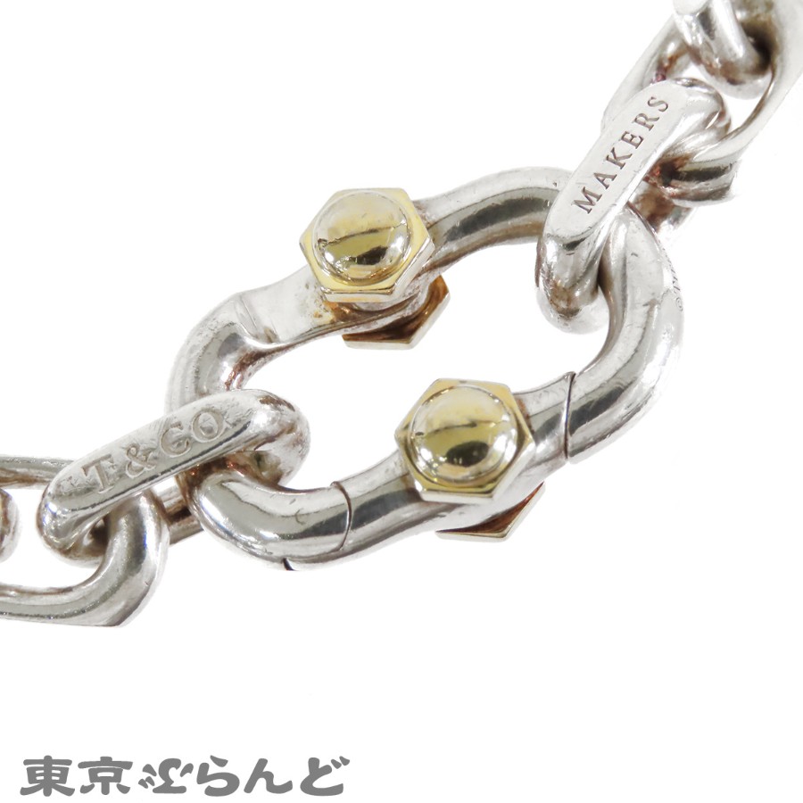 Tiffany & Co. Makers Wide Chain Bracelet, Silver x Yellow Gold (SV925 K18YG)