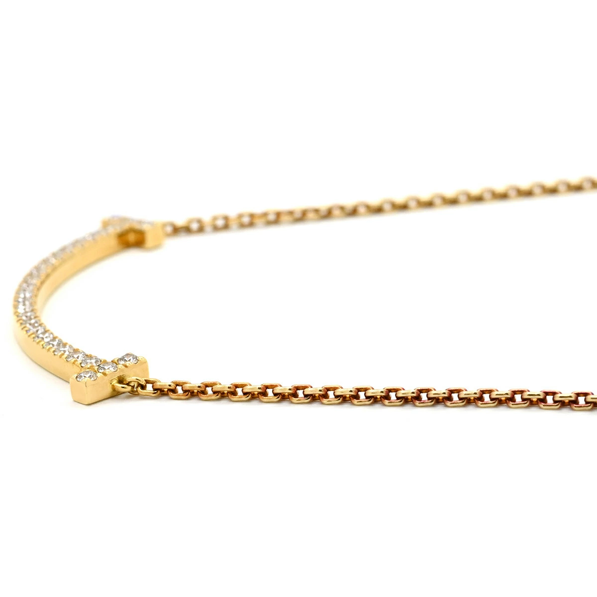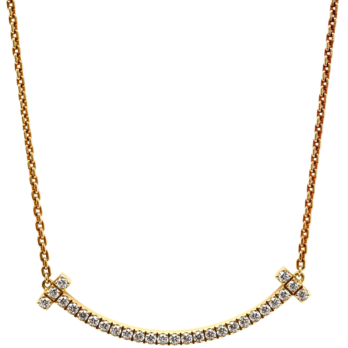 ティファニー Tiffany & Co ネックレス Tスマイル ペンダント ミディアム ダイヤモンド K18YG ダイヤモンド イエローゴールド Au750 Tiffany T smile - レディース 【中古】