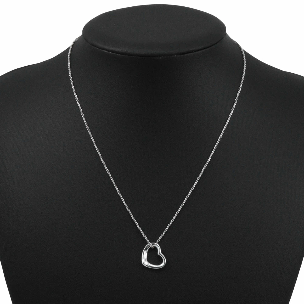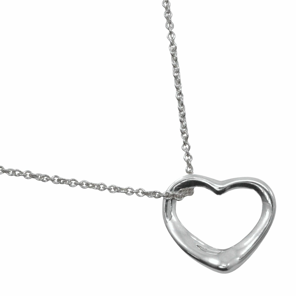 Tiffany & Co. Open Heart Necklace by Elsa Peretti, 925 Sterling Silver, Made in Spain, Approximately 2.5g, Women's, Pre-owned, Rank A