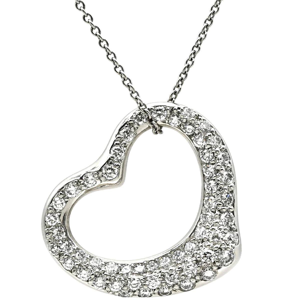 ティファニー Tiffany & Co ネックレス オープンハート パヴェダイヤ オープンハート Pt950 ダイヤモンド プラチナシルバー T&Co. Pt950 プラチナム エルサペレッティ - レディース 【箱】定番 人気 美品 【中古】