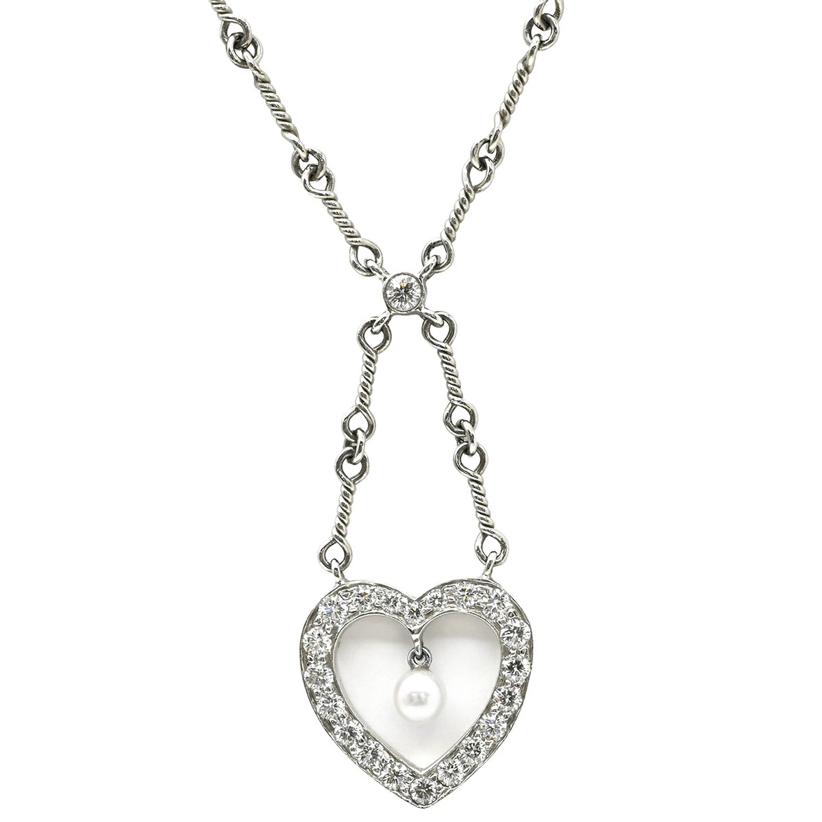 ティファニー Tiffany & Co ネックレス センチメンタル ハート ダイヤモンド ペンダント センチメンタル Pt950 ダイヤモンド パール プラチナシルバー T&Co. あこや ベビーパール - レディース 【箱】定番 人気 美品 【中古】