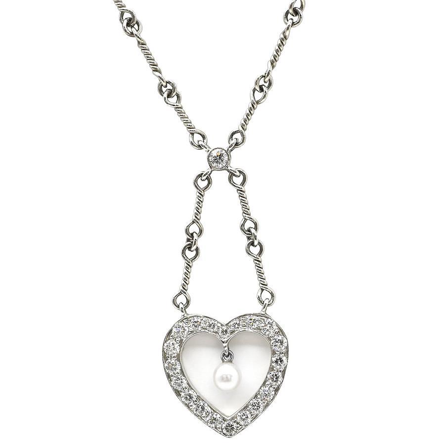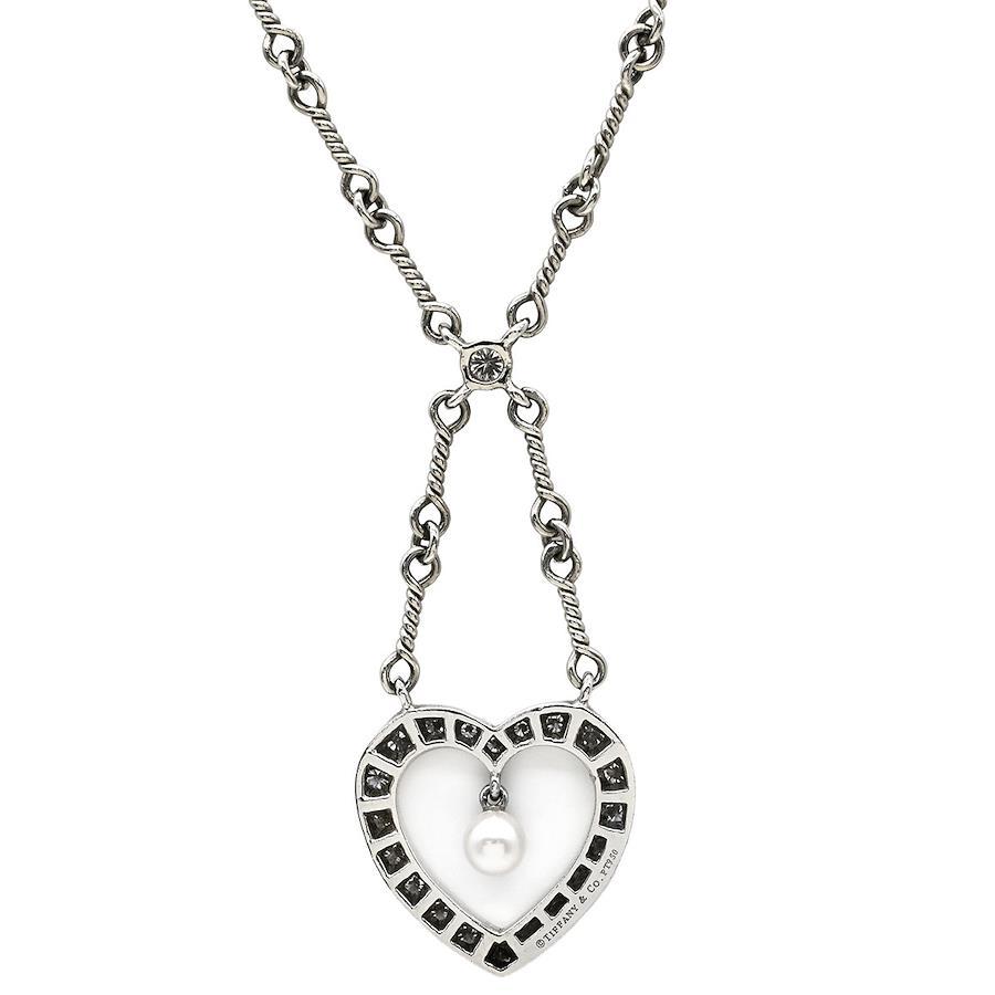 Tiffany & Co. Sentimental Heart Diamond Pendant Necklace in Pt950 Silver with Akoya Pearls