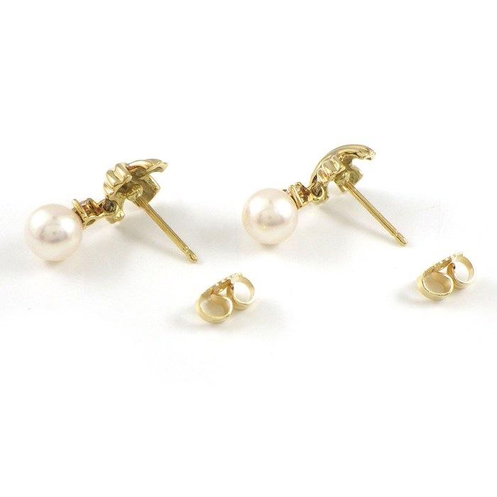 Tiffany & Co. ピアス シグネチャー クロス パール 6.5mm珠 ダイヤモンド K18YG 【中古】