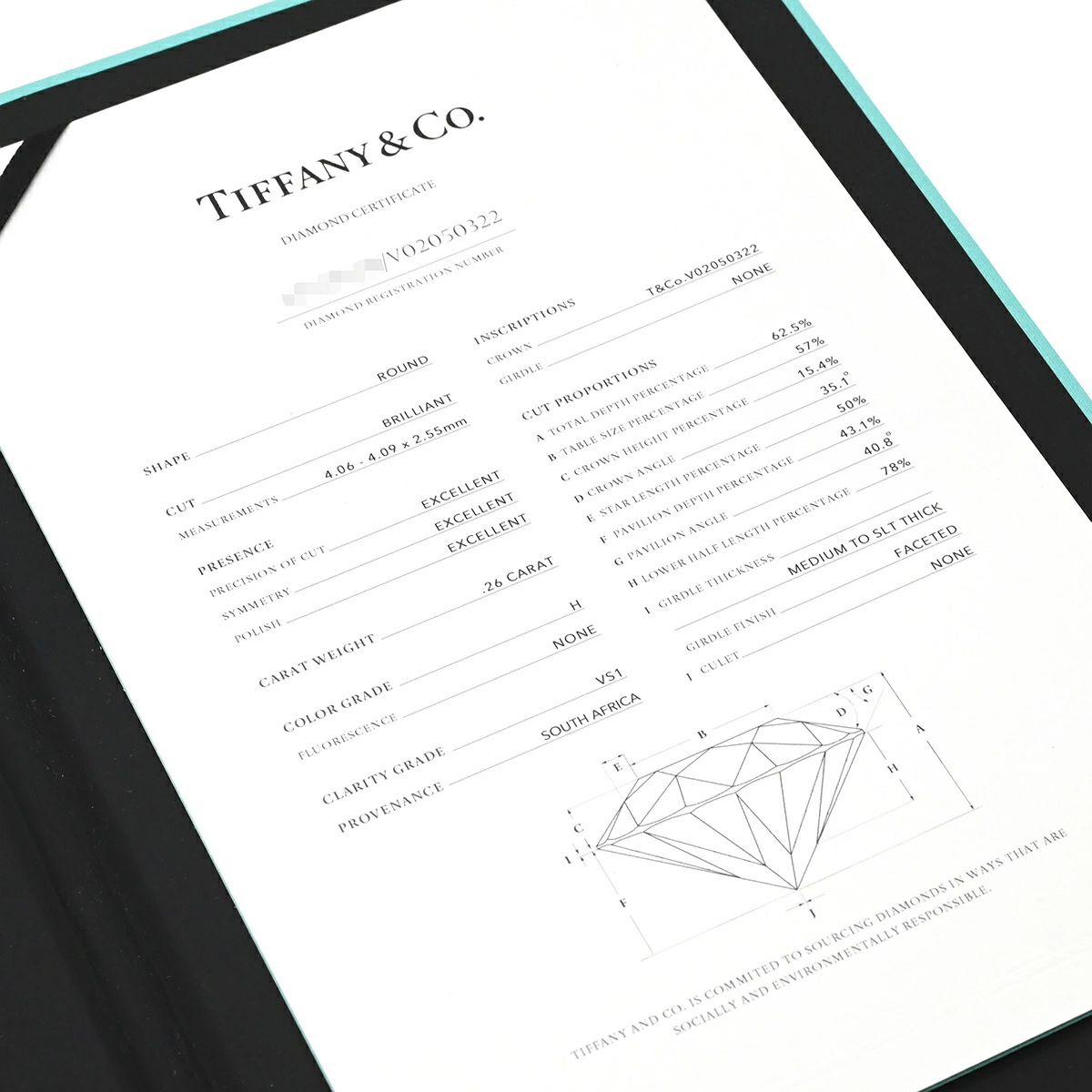 ▲クリックで拡大されますティファニー Tiffany & Co リング 指輪 ソリティア ダイヤリング Pt950 ダイヤモンド プラチナシルバー T&Co. 一粒 1P 立爪 0.26ct - 7号 レディース 【箱】 【中古】