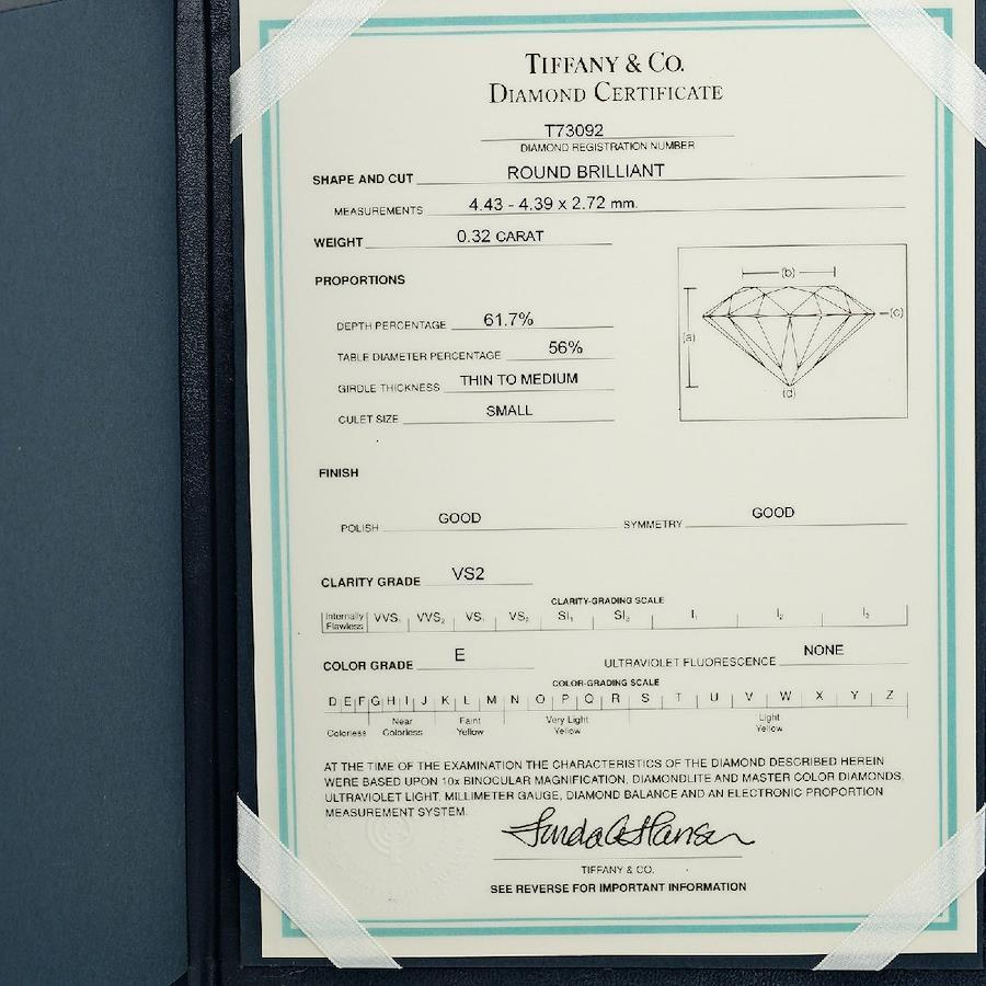Tiffany & Co. Solitaire Ring, Size 8, 0.32ct, VS2/E/GOOD, Pt950 Platinum, Diamond, Approx. 3g, Pre-owned
