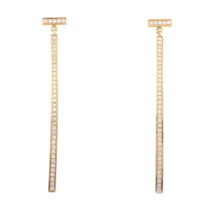 Tiffany & Co. T-bar Swing Earrings, Full Pavé Diamonds, 18K Gold (Pre-owned)