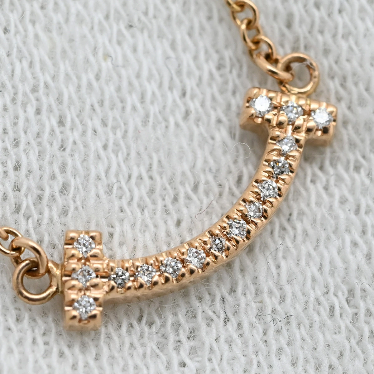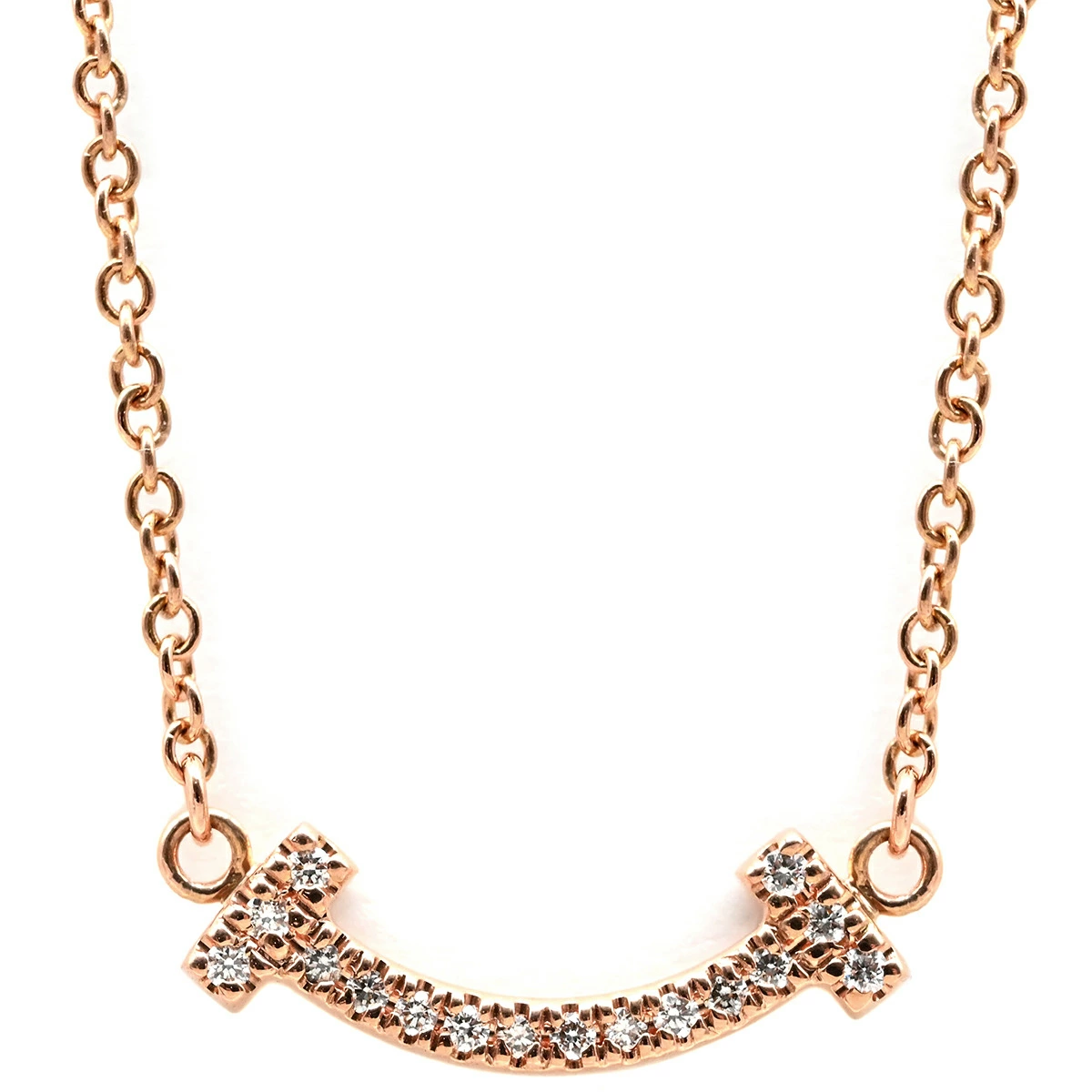 ティファニー Tiffany & Co ネックレス Tスマイル ミニ ダイヤペンダント T K18PG ローズゴールド ピンクゴールド ダイヤモンド Au750 18K RG PG Tiffany T smile - レディース定番 人気 美品 【中古】