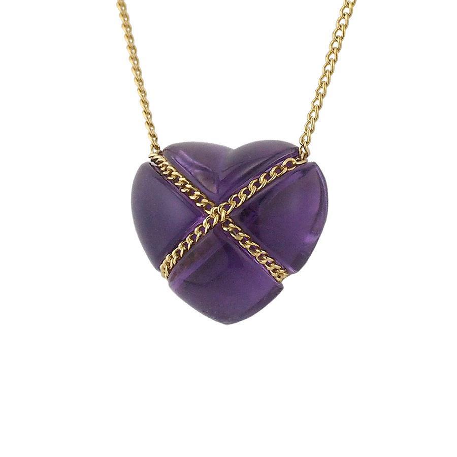 Tiffany Amethyst Chain Cross Heart Necklace in 18K Yellow Gold