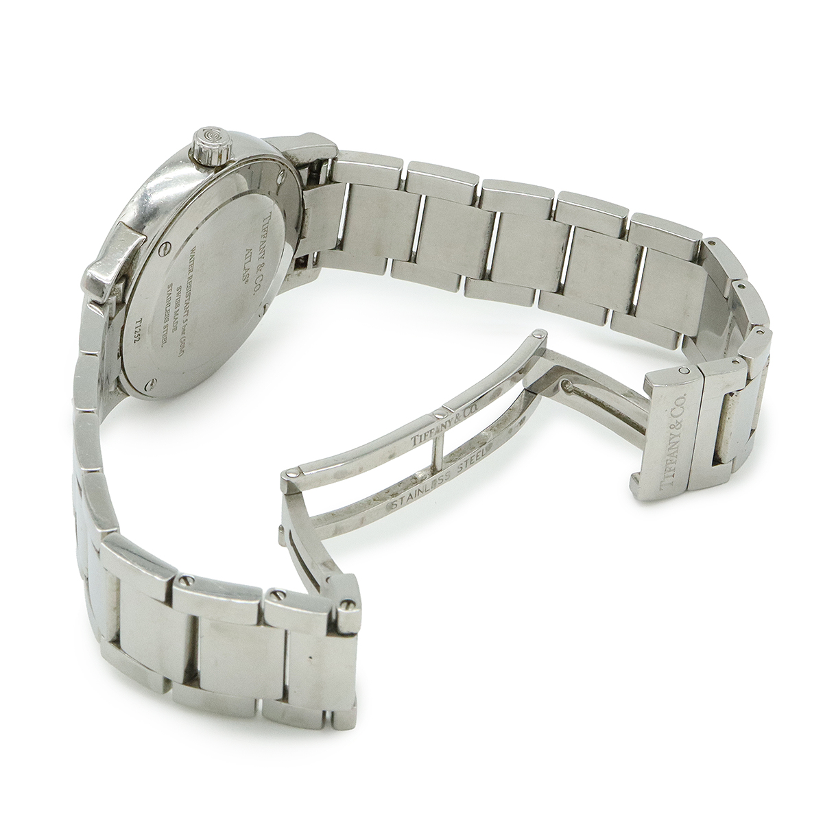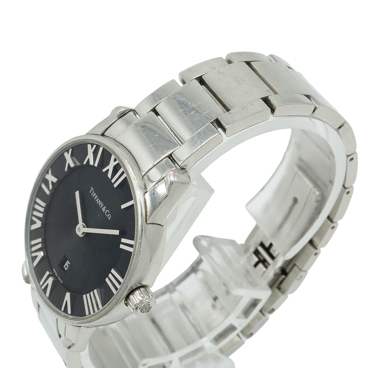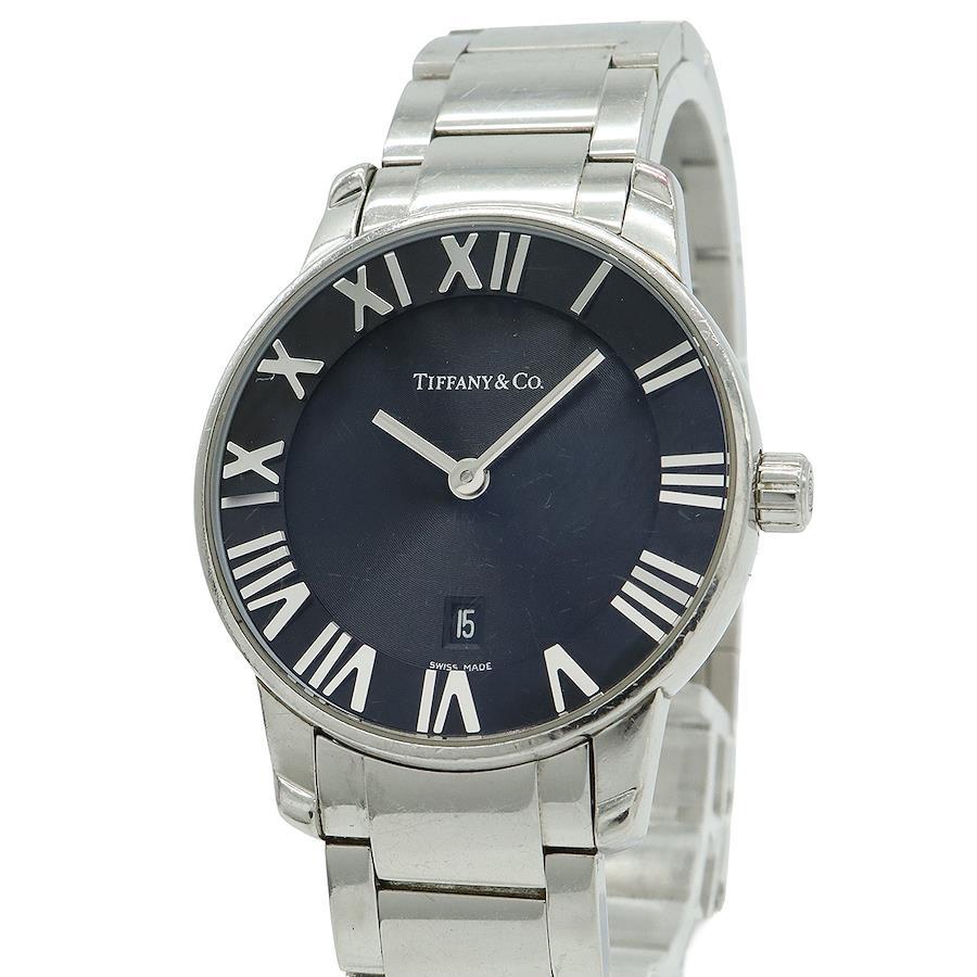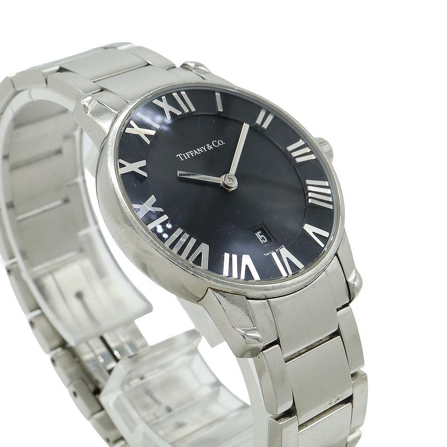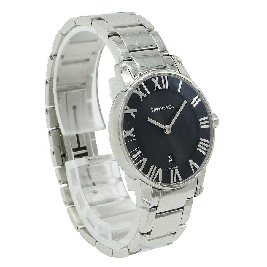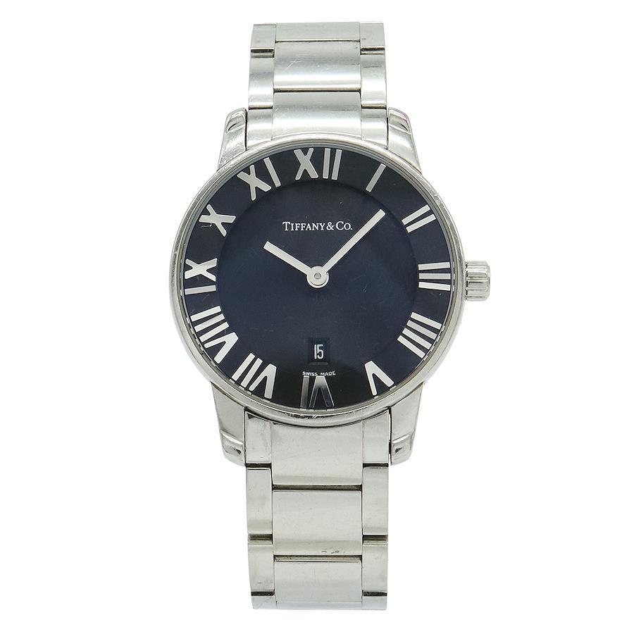 【コメント】ティファニーの代表的モデル「アトラス」。ブラック文字盤が高級感があり、オンオフ問わずご愛用いただけます。