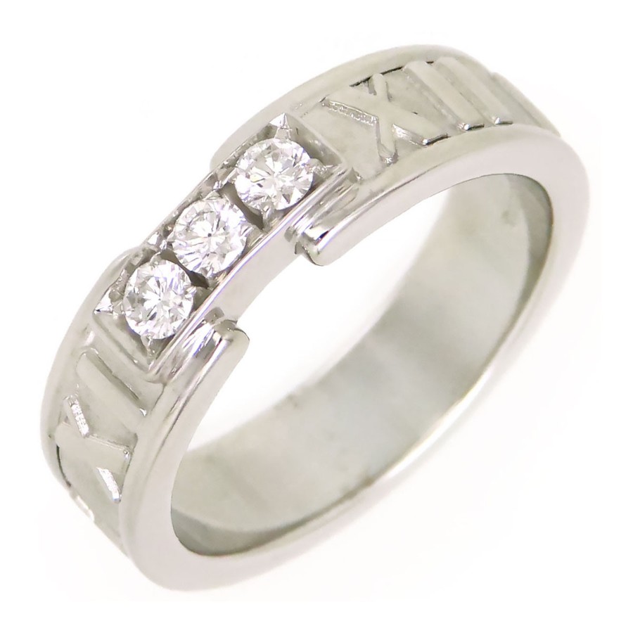 Notes:There are some minor scratches that could not be completely removed, but overall it is in good condition.#14 3P Diamond Roman Numeral White Gold18K ATLAS Matte Finish JewelryFor International BuyersBrand: TIFFANY&Co.Item: Atlas ring diamondMaterial: 750 (K18WG)/3P DiamondWeight: 8.0gSize: JP #14(No. 14)Width: 5.4 mmCondition: ALMOST_NEW (Pre-owned)