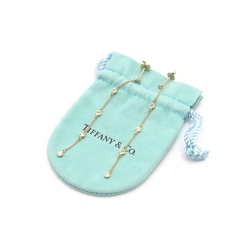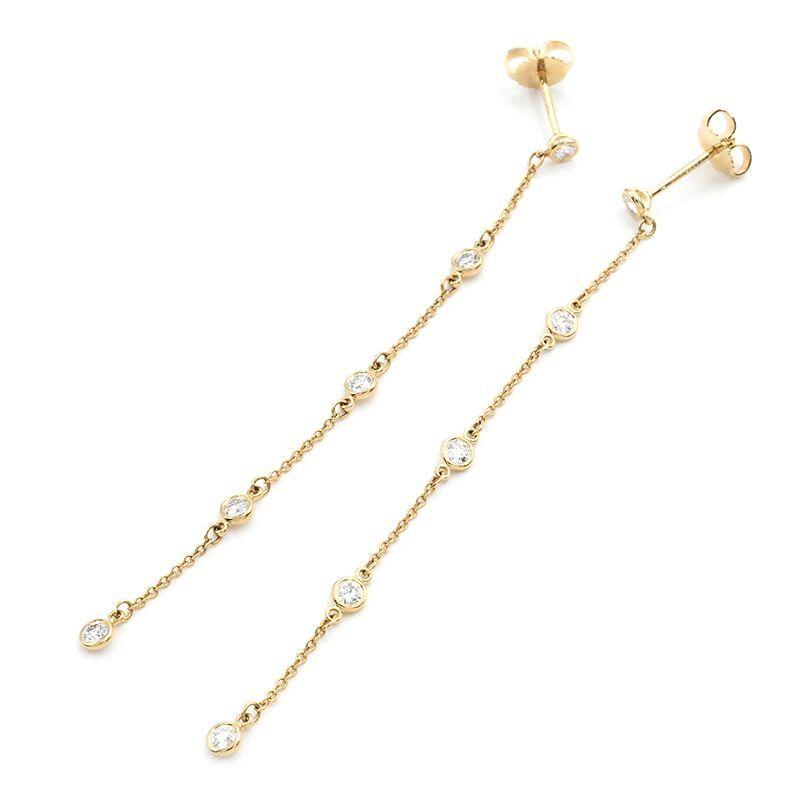 Tiffany & Co. By the Yard Drop Earrings, 18K Yellow Gold with 5 Diamonds, 1.9g