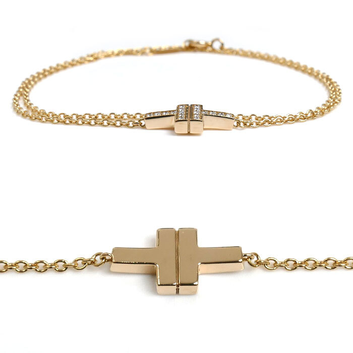 TIFFANY&Co. Tiffany K18PG Pink Gold T TWO Diamond Bracelet, 3.9g, 34cm, Women's, Used