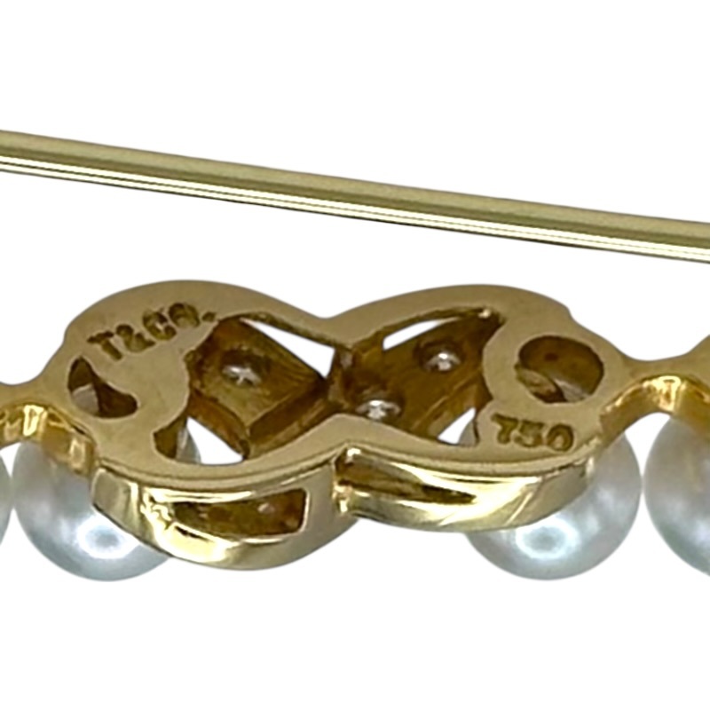 Tiffany & Co. Signature Brooch, Gold 750/Pearl/Diamond, Used Jewelry