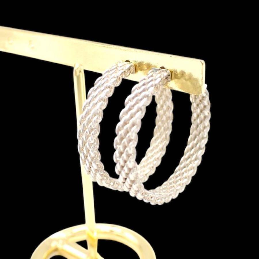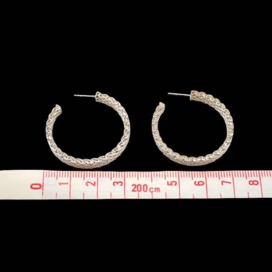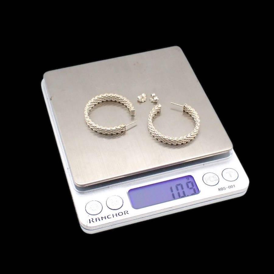 Brand: TiffanyTiffany & Co.Size: Height: Approx. 3.2cmWeight: Approx. 10.9gWidth: Approx. 5.0mmCondition:There is some tarnish, but the item is in relatively good condition. There are no noticeable scratches and it is still in good condition and can be used.Color: SilverMaterial: SV925 (Sterling Silver)Accessories: None (Item shipped separately)Product Details:Mesh Hoop Earrings