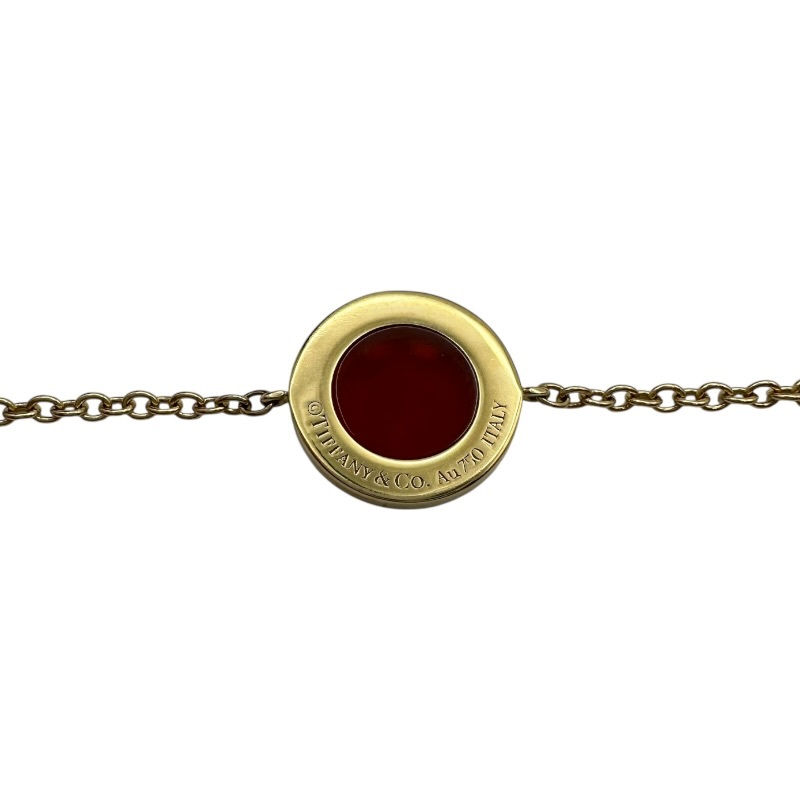 Tiffany & Co. TTWO Circle Bracelet, Gold, Au750/Carnelian/Diamond, Used Jewelry