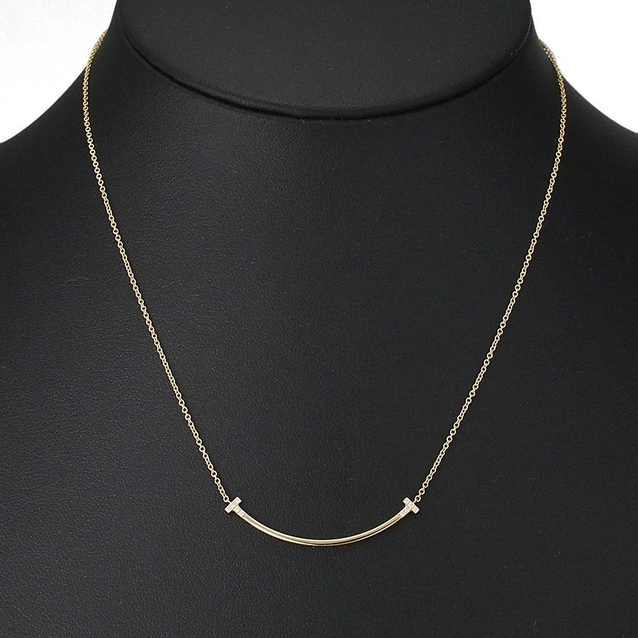 Brand: Tiffany & Co.Product Name: T-Smile Small Diamond NecklaceModel Number: 74957013Size: Total Length: Approx. 46cm (including clasp)Circumference: Approx. 45.8cm (5cm adjuster)Pendant: Approx. 1.2 x 36.8mmWeight: 2.7g (including chain)Material: 18K Yellow GoldStamp: [(C)TIFFANY & Co. Au750 A50K] on the top; [(C)TIFFANY & Co. Au750] on the chainRetail Price: ¥302,500Accessories: Original boxRank: SACondition/Notes: PolishedIf you have any questions about this item, please contact us via the Q&A form.If the stone size is not listed, it is considered an unknown size due to the lack of engraving.