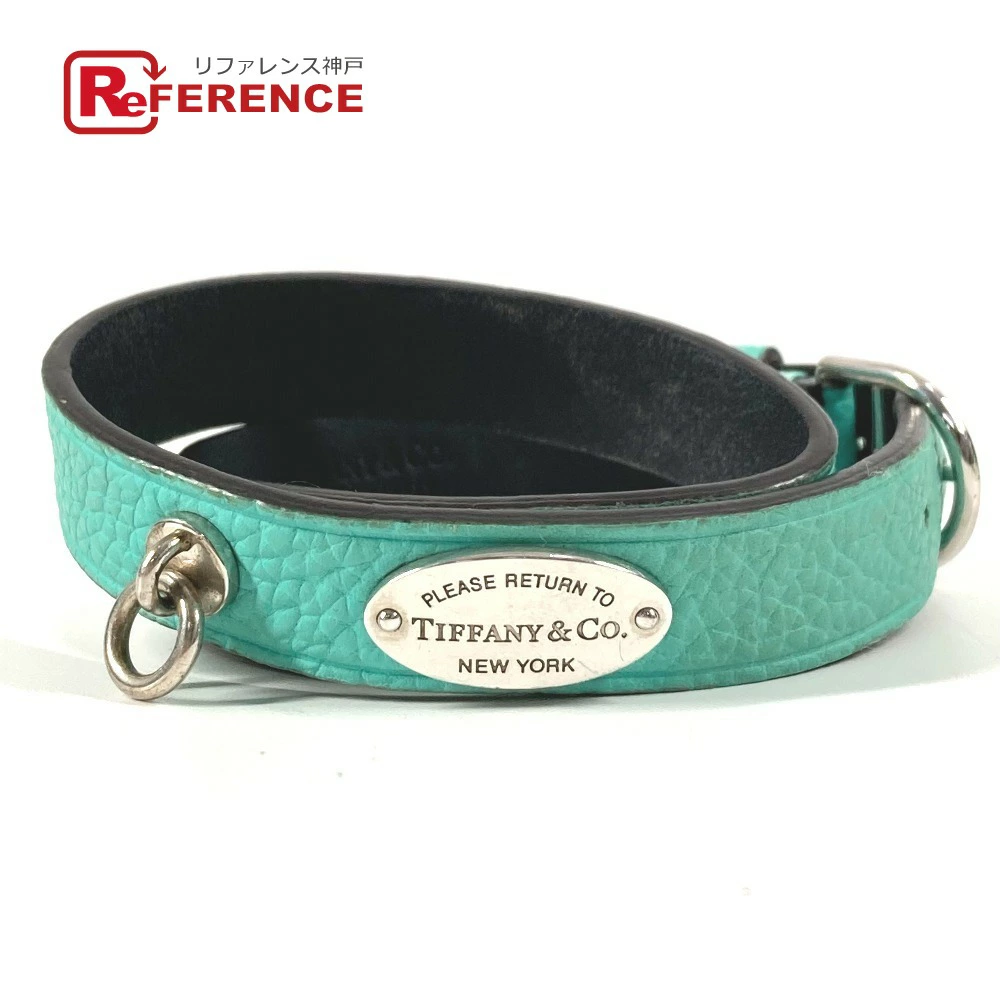 TIFFANY & Co. Tiffany Double Bracelet, Return to Tiffany Logo, Leather, Blue, Women's, Pre-owned