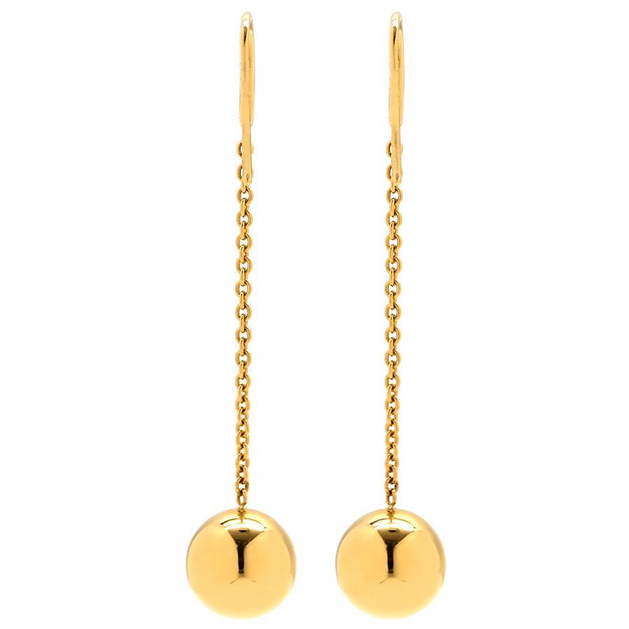 Tiffany & Co. Earrings with Ball Hooks, Gold, Yellow Gold, T&Co. Au750, 18K, Drop, Swing, Long, Round