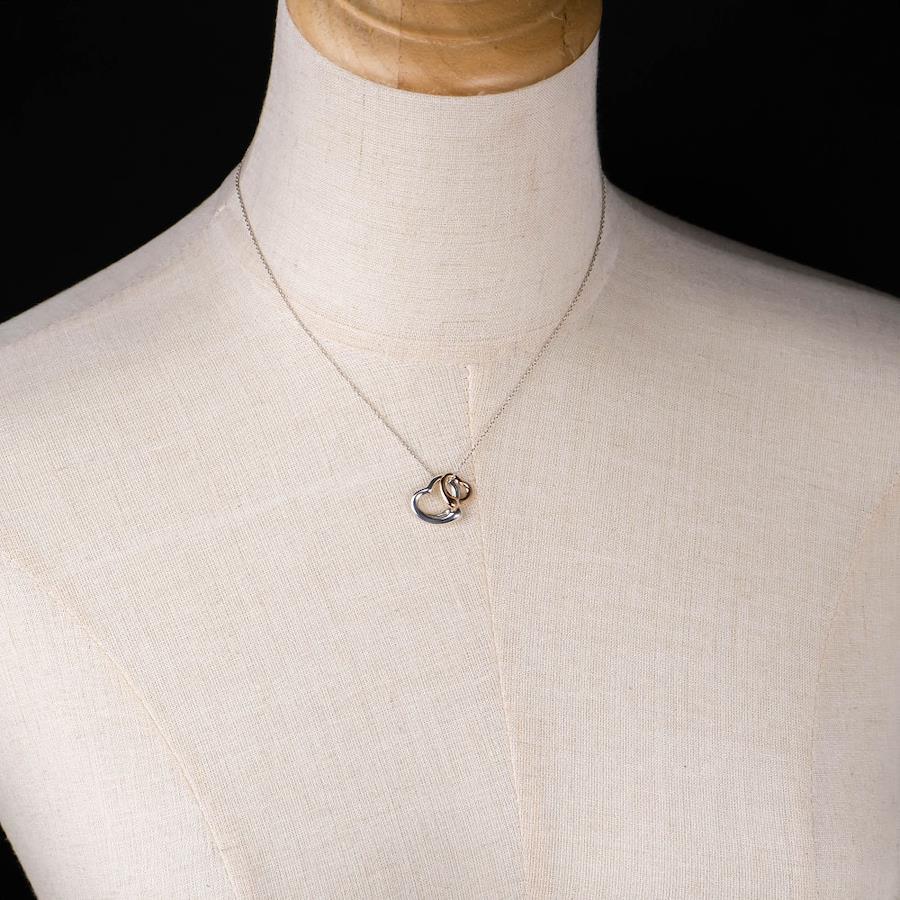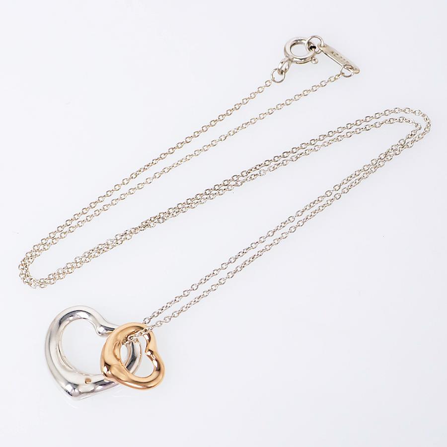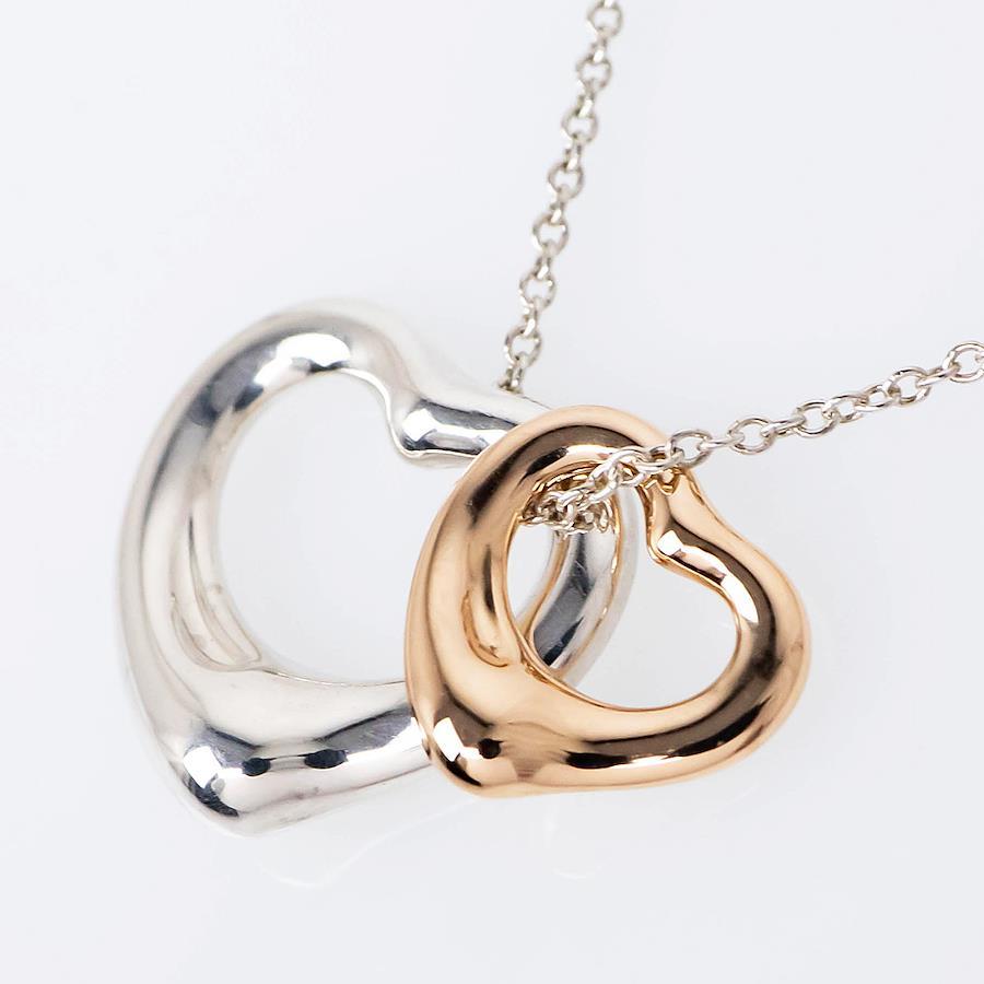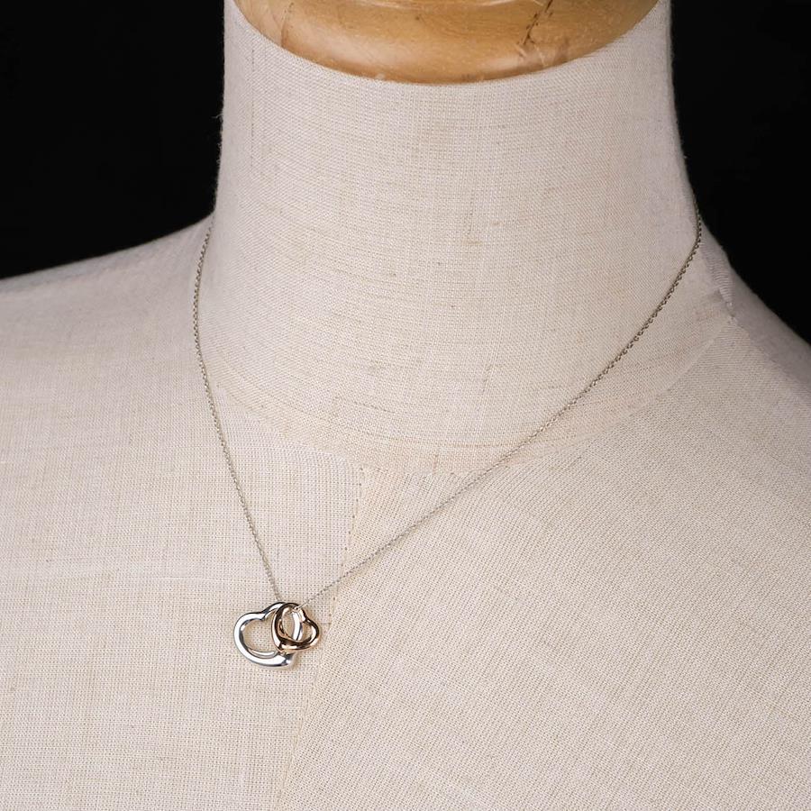 Tiffany Elsa Peretti Open Heart Pendant Necklace, 2 Hearts, AG925, 750RG, 18K