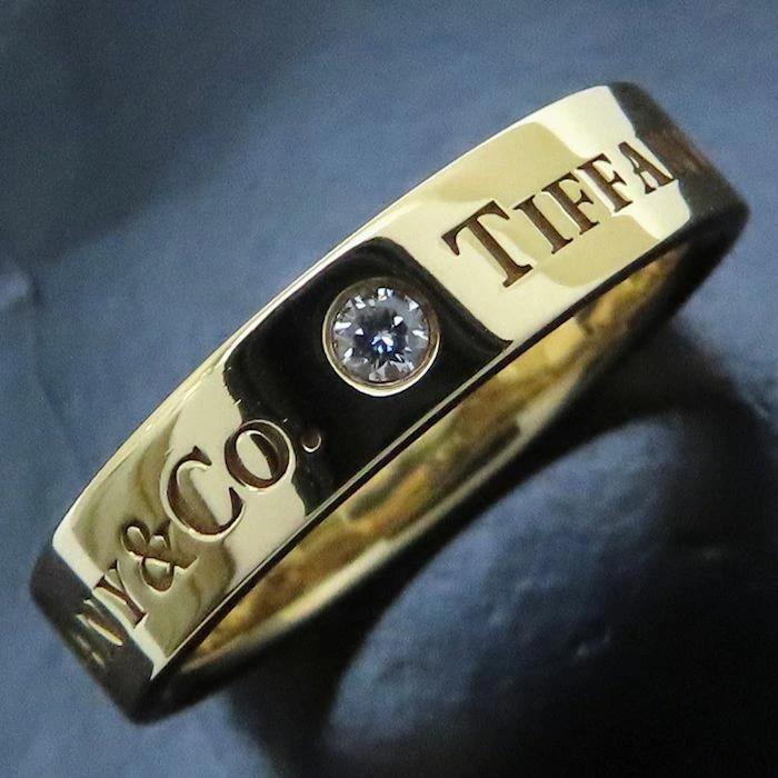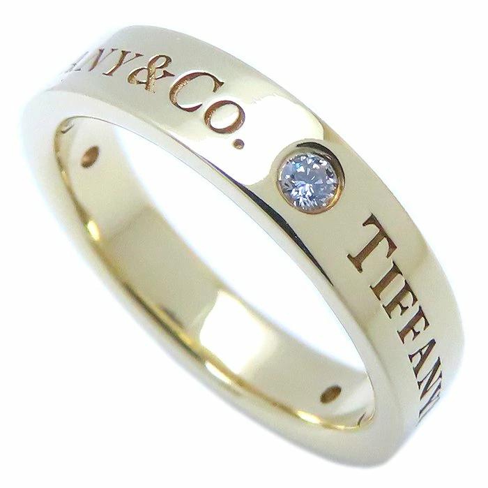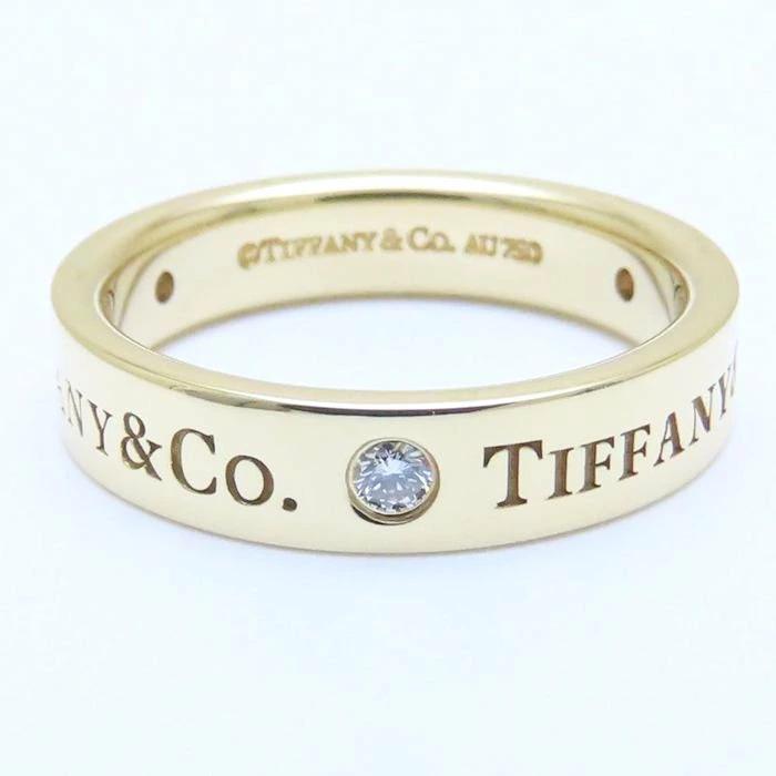 TIFFANY & Co. Tiffany Flat Band Ring with 3 Diamonds, Size 8.5, 18K Yellow Gold, Women's /294441 [Pre-owned] [BJ]