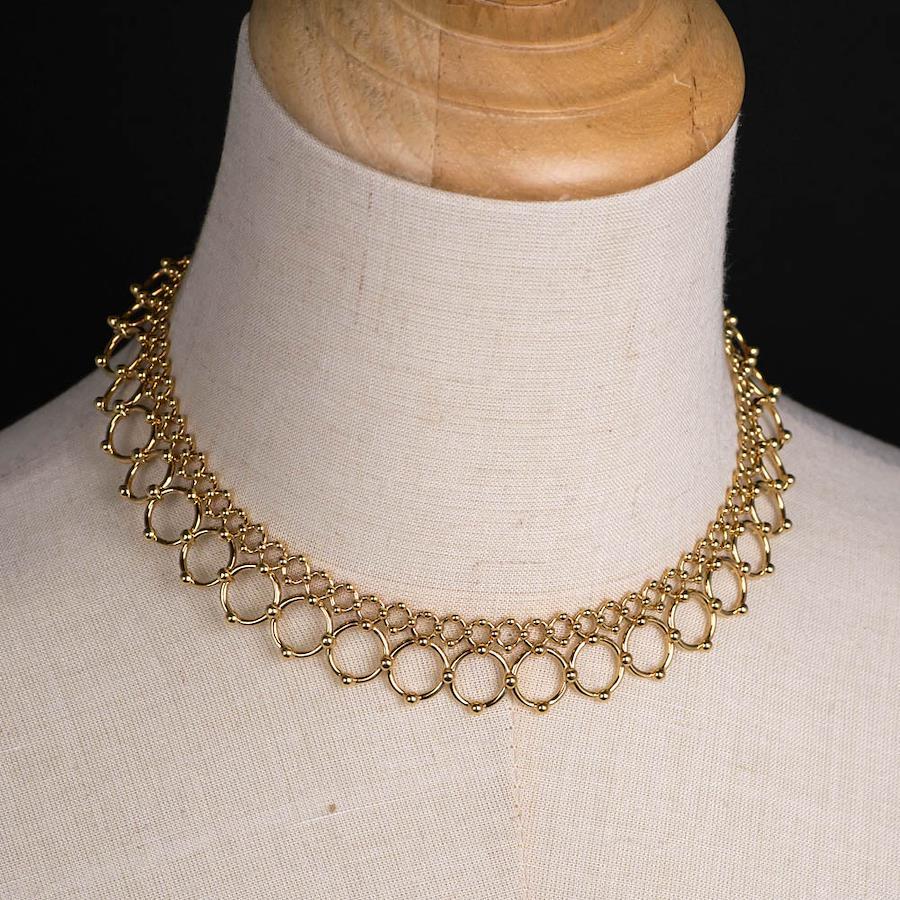 Tiffany Graduated Drink Double Row Choker 750YG 18K Yellow Gold Necklace