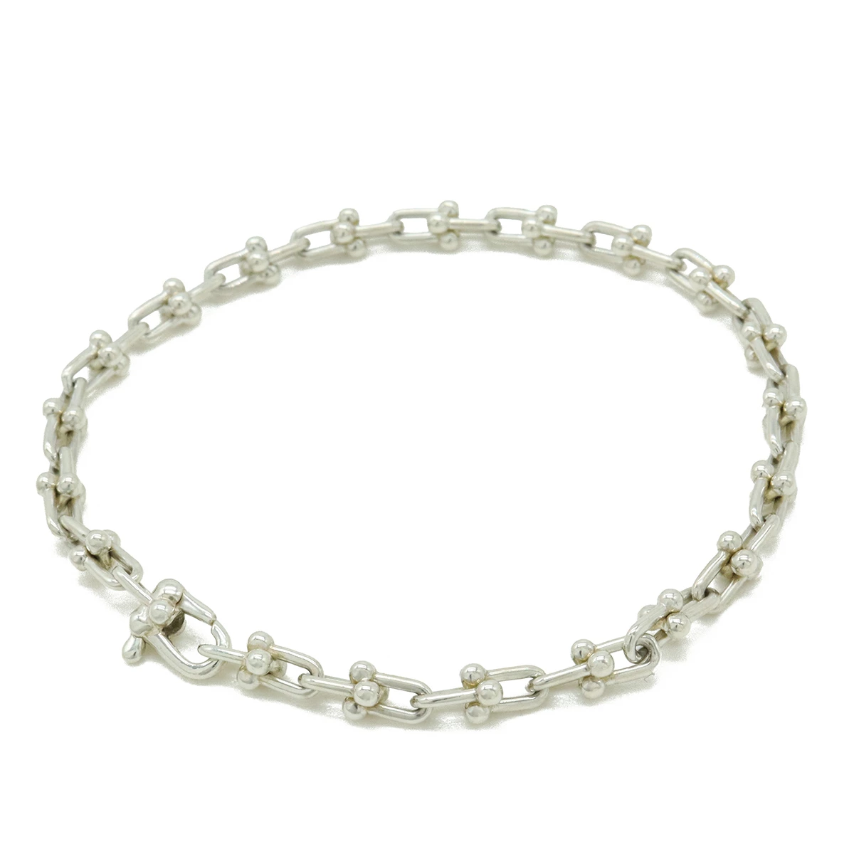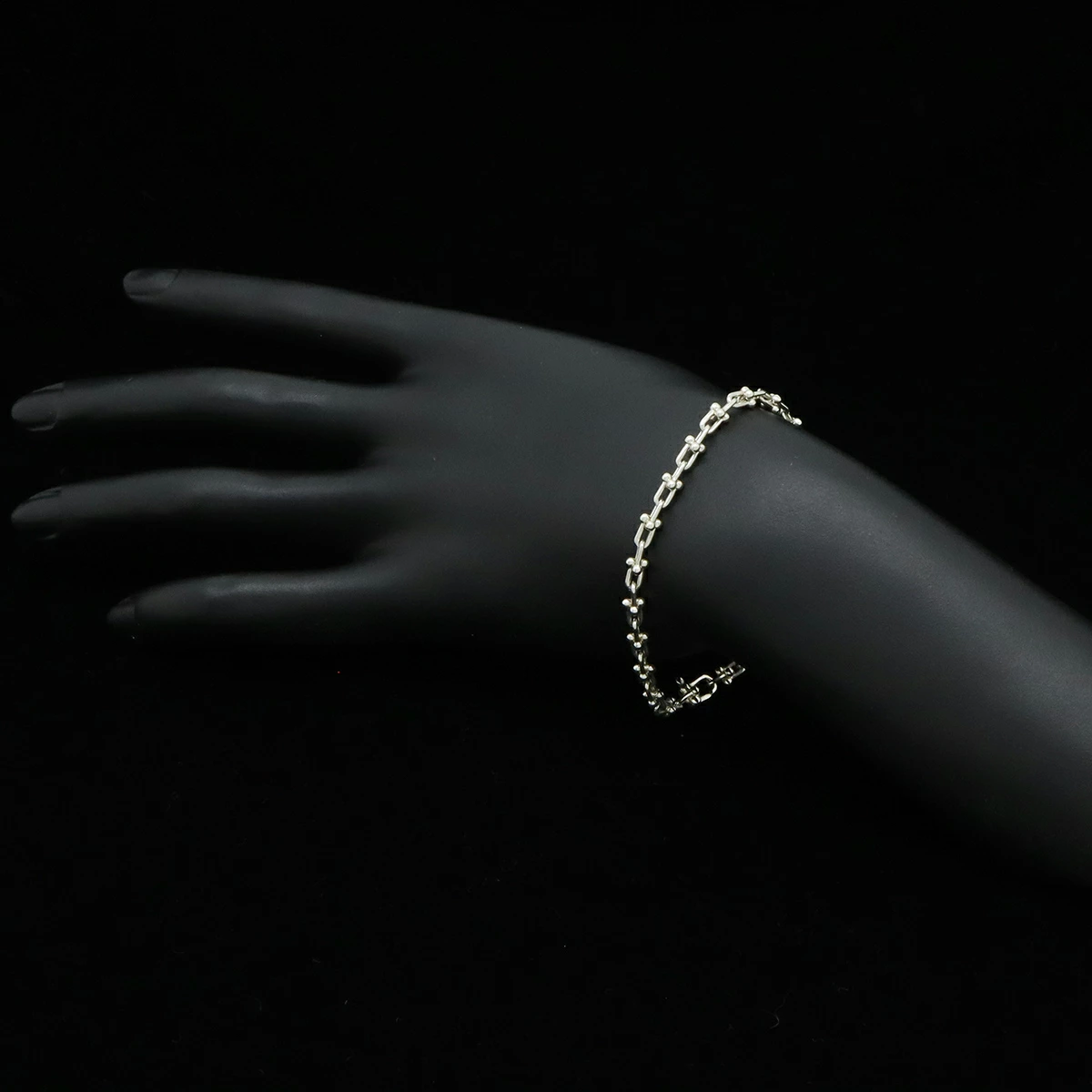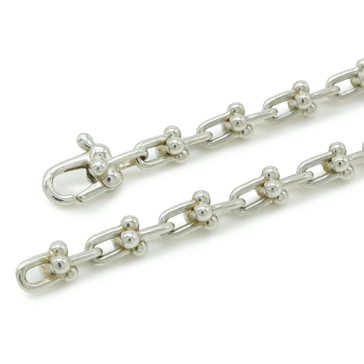 ニューヨークの都会的な鋭さを捉えたゲージ リンクの大胆なチェーンが、存在感を放ちます。