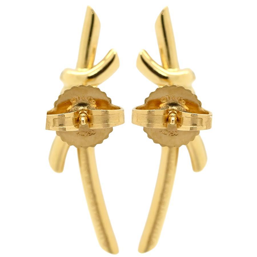 Tiffany Knot Diamond Earrings, Gold, Yellow Gold, T&Co. Au750, 18K, Ribbon Knot Design