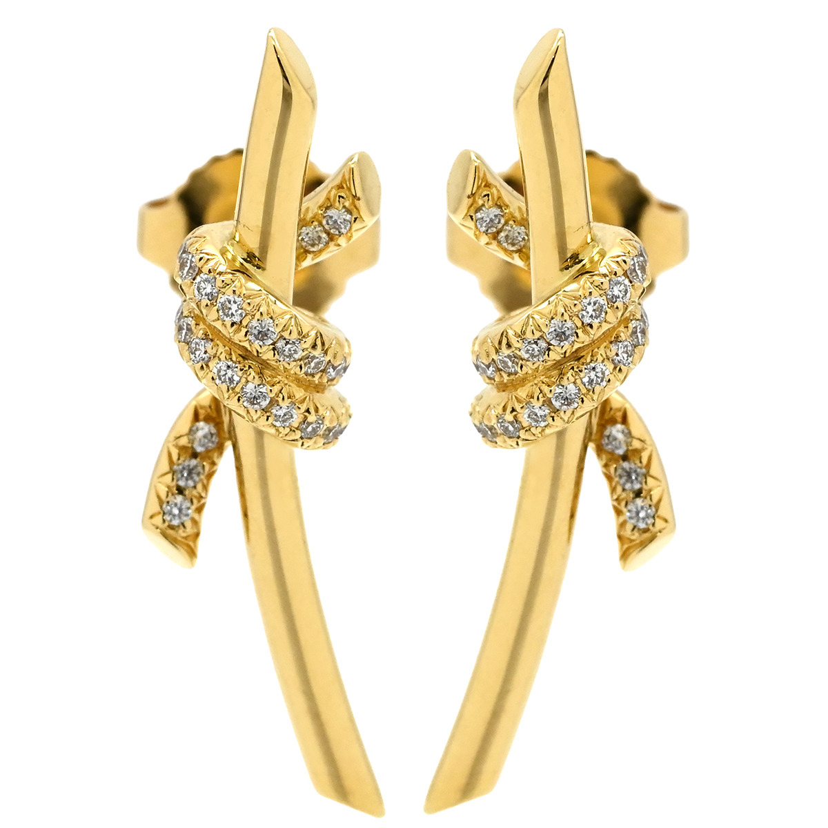 Tiffany & Co. Knot Earrings, 18K Yellow Gold, T&Co. Au750, 18K, Ribbon Knot Design - A Classic, Popular, Excellent Condition, Pre-Owned, Women'sBrand: TiffanyModel Number: -Features:Color: Yellow GoldMaterial: 18K Yellow Gold / DiamondSize: 7.5 x 24mmStones: DiamondWeight: 4.6gAccessories: NoneRank: A [Overall Condition Details]There is minor damage due to use and storage, but the item is in relatively good condition. *See images and comments.[Condition Details] Pre-Owned, Excellent ConditionThere are minor scratches, small dents, and distortion and dullness on the post as shown in the images.