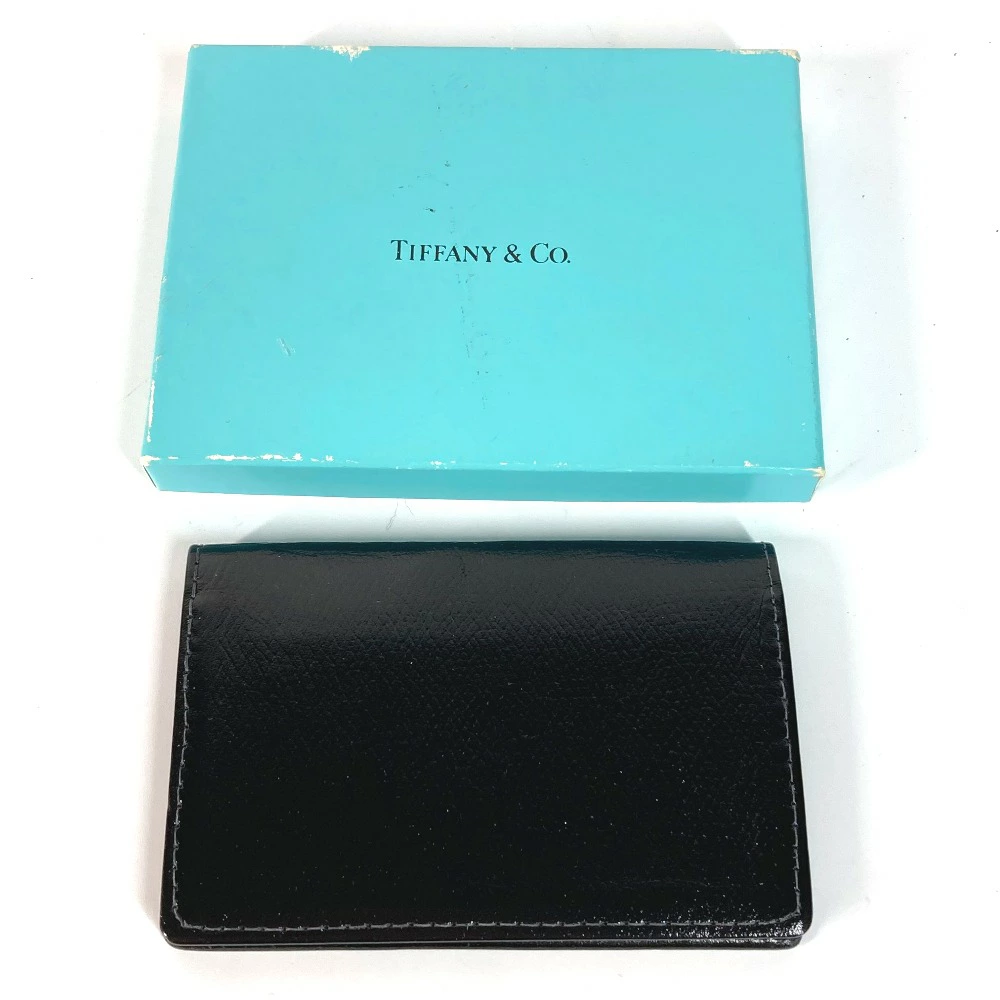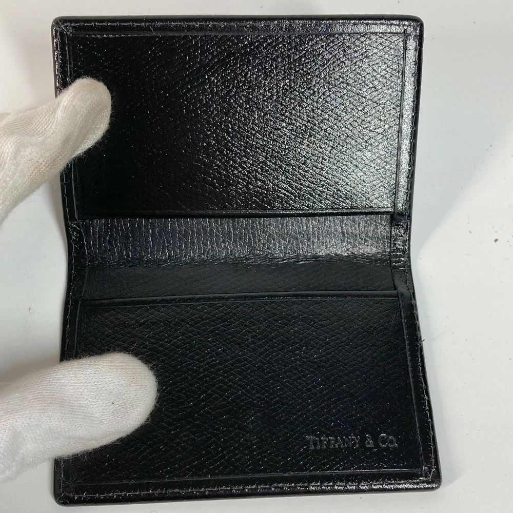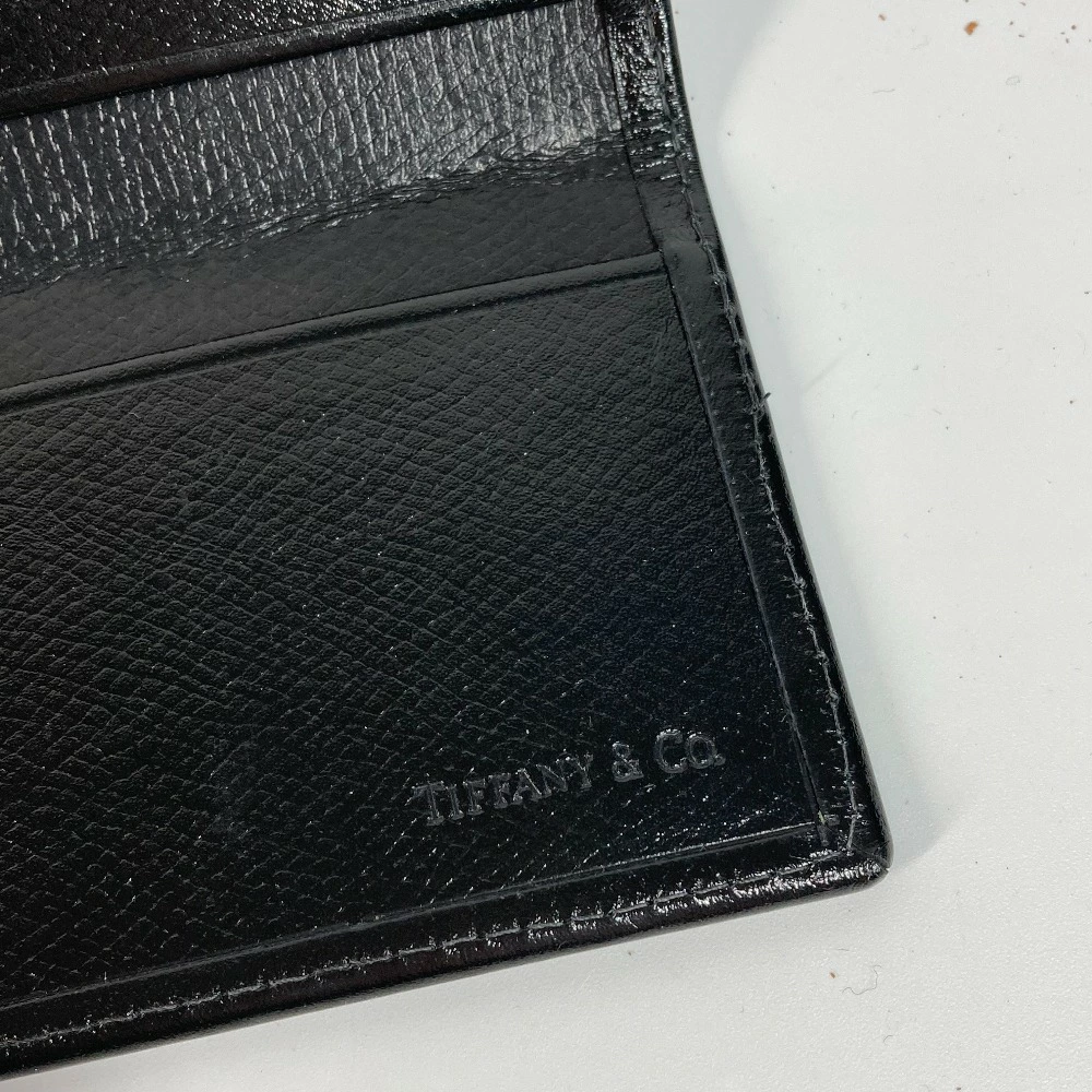 TIFFANY & Co. Tiffany logo business card holder, pass case, bifold card case, leather, men's, black [pre-owned]
