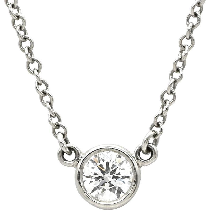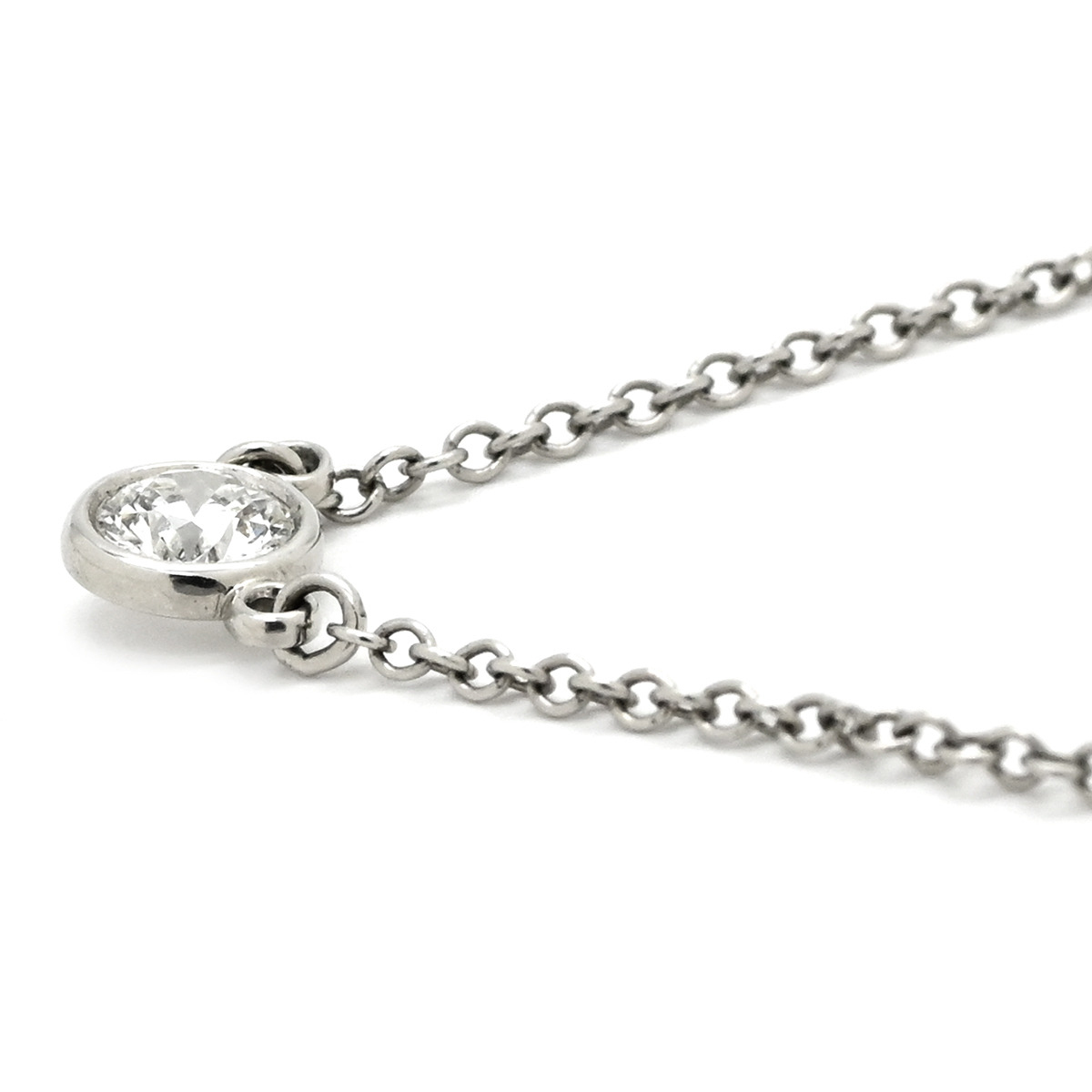 Tiffany & Co. Necklace by the Yard Single Diamond Pendant in Platinum (Pt950) Silver, Pt T&Co., Single Stone, Elsa Peretti