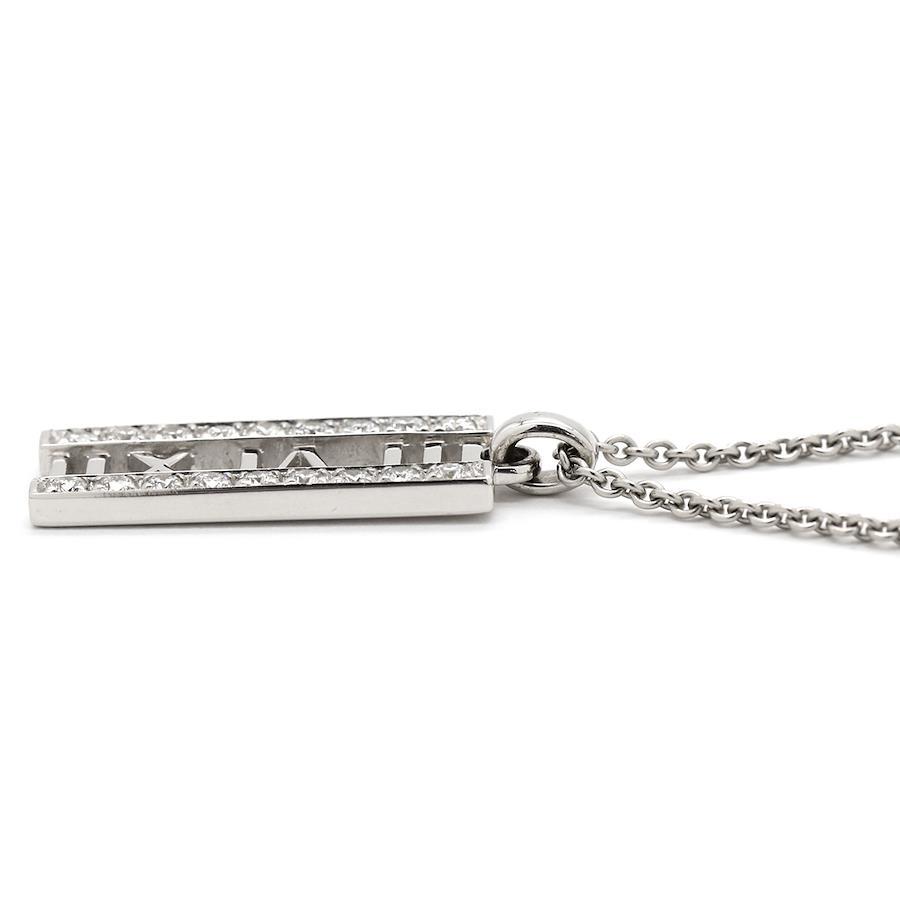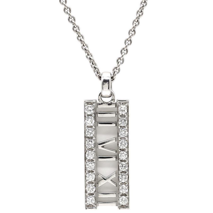 Tiffany Atlas Bar Pierced Necklace, 18K White Gold, Diamond, 750 Silver, 750 Silver, Roman Numerals