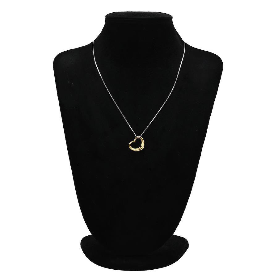 Tiffany & Co. Open Heart Pendant Top, Gold, Yellow Gold, T&Co. Au750, 18K, Elsa Peretti Necklace