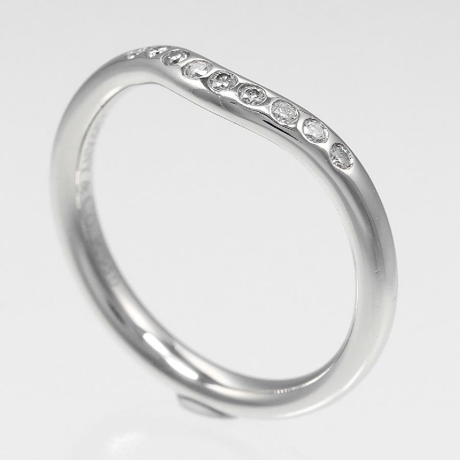Tiffany & Co. Curved Band Ring, Size 6.5, 2mm Model, Pt950 Platinum, 9 Diamonds, Approx. 3.22g, Pre-owned, TIFFANY & Co.