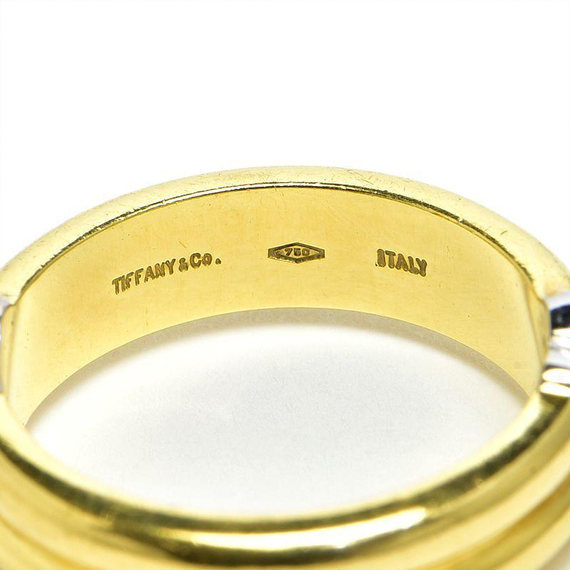 Brand: Tiffany & Co.Product Name: Signature RingModel Number:Size: 10, Arm Width: 4.6mm, Motif: 5.0mm x 6.0mmStamp: TIFFANY & Co. 750 ITALYMaterial: 18K Yellow Gold, 18K White Gold, Ruby, SapphireWeight: 7.0gList Price:Accessories: New, plain presentation boxCondition: A-There are minor scratches on the arm.Comment: This item has been authenticated and is authentic.