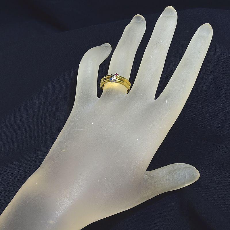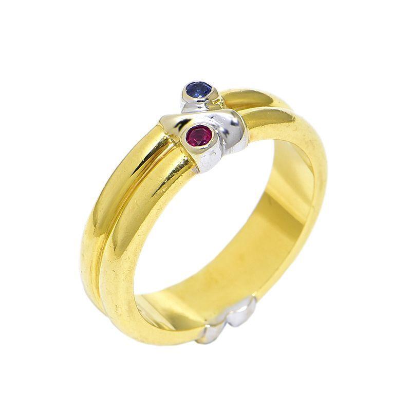Tiffany Signature Ring, size 10, 18K Yellow Gold, 18K White Gold, Ruby, Blue Sapphire, 6.9g, Pre-owned