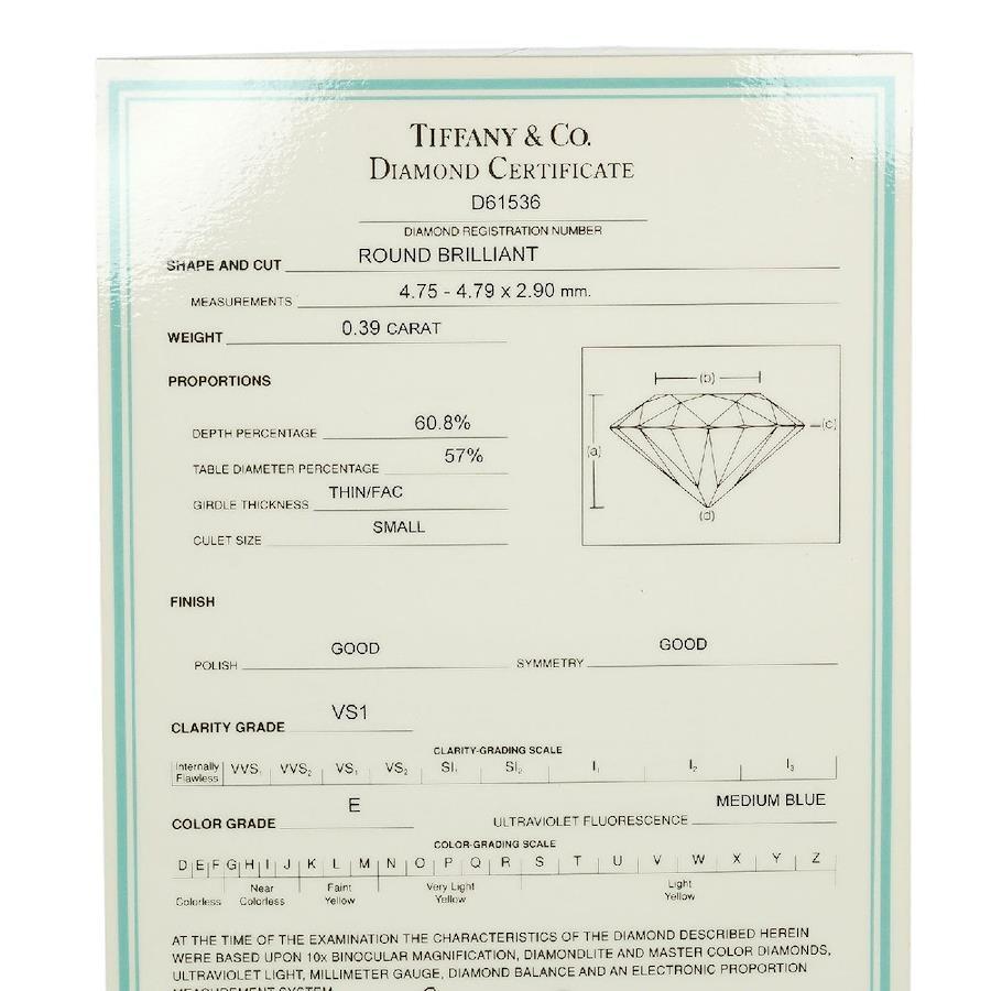 Tiffany Solitaire Ring, Size 6.5, 0.39ct, VS1/E/GOOG, Pt950 Platinum, Diamond, TIFFANY & Co., Pre-owned