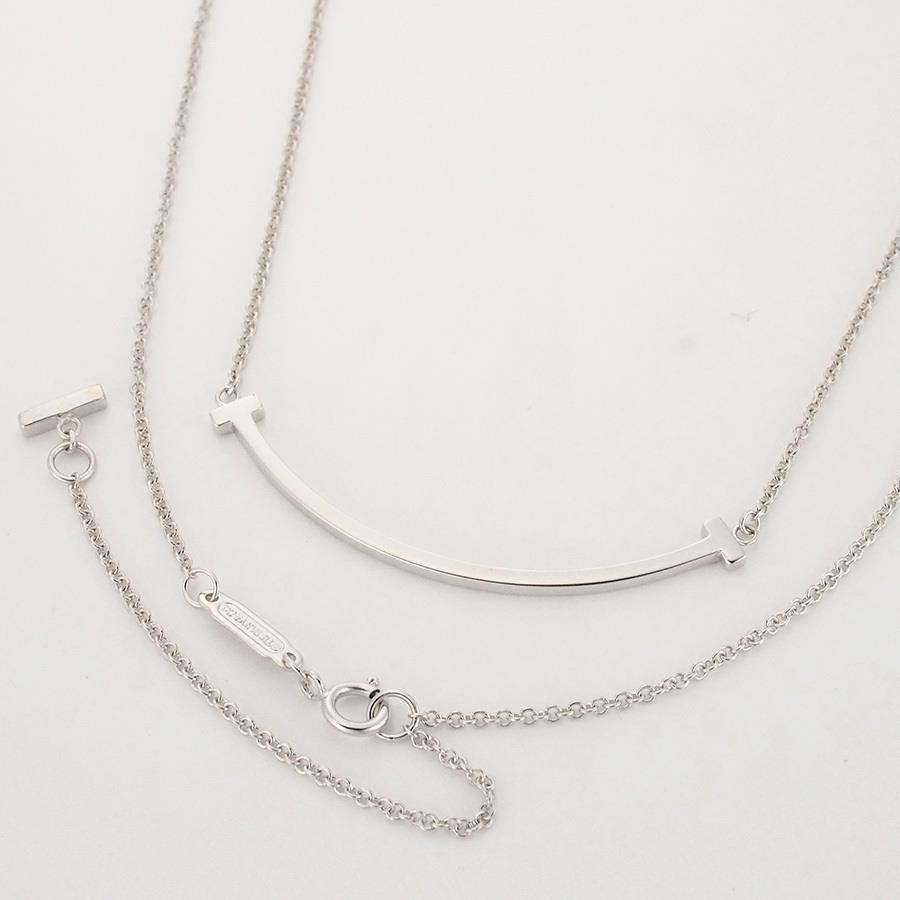 Brand: Tiffany & Co.Product Name: T Smile Small Pendant NecklaceModel Number: 60011677Size: Total Length: Approx. 46cm (including clasp)Circumference: Approx. 45.5cmTop: Approx. 37 x 1.4mmWeight: 3.1g (including chain)Material: 18K White GoldStamp: [Au750 (C) TIFFANY & Co.] on chainRetail Price: ¥211,200Includes: Original BoxRank: SACondition/Notes: PolishedIf you have any questions about this item, please contact us via the Q&A form.If the stone size is not listed, it is considered an unknown size due to the lack of engraving.