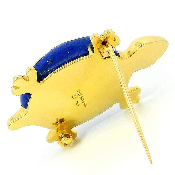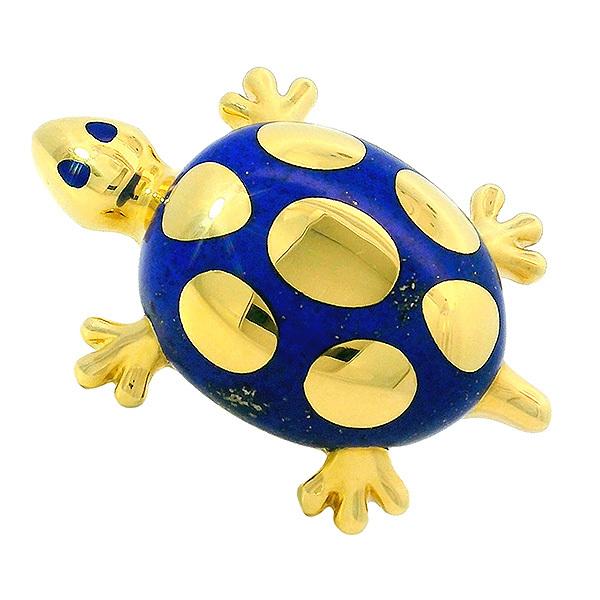 Tiffany Turtle Lapis Lazuli Brooch in 18K Yellow Gold.