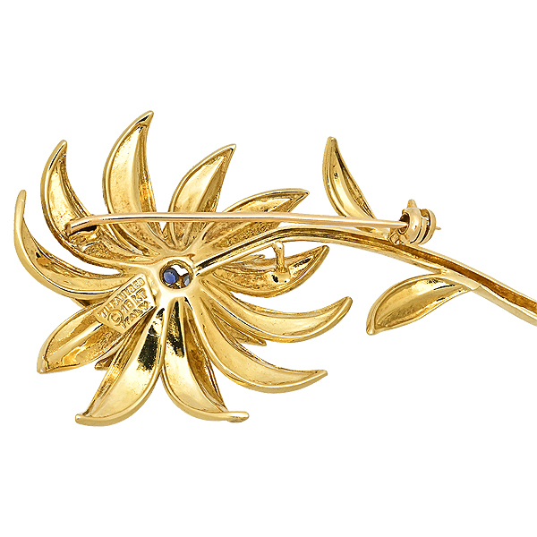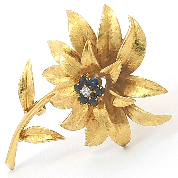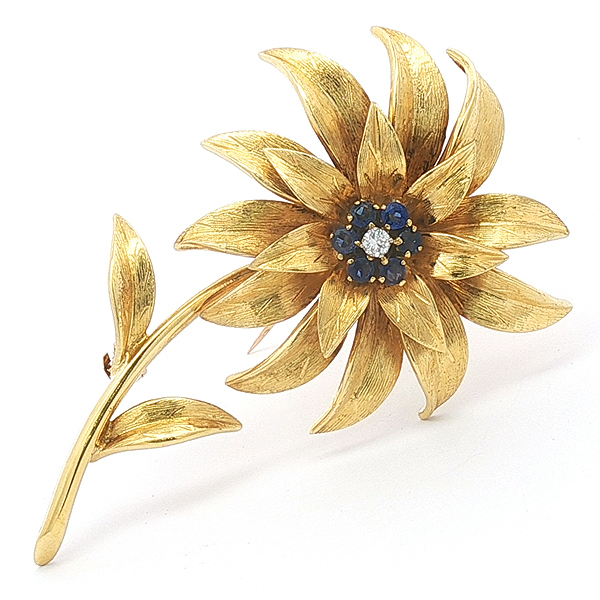 Tiffany Vintage Flower Sapphire Diamond Brooch K18YG