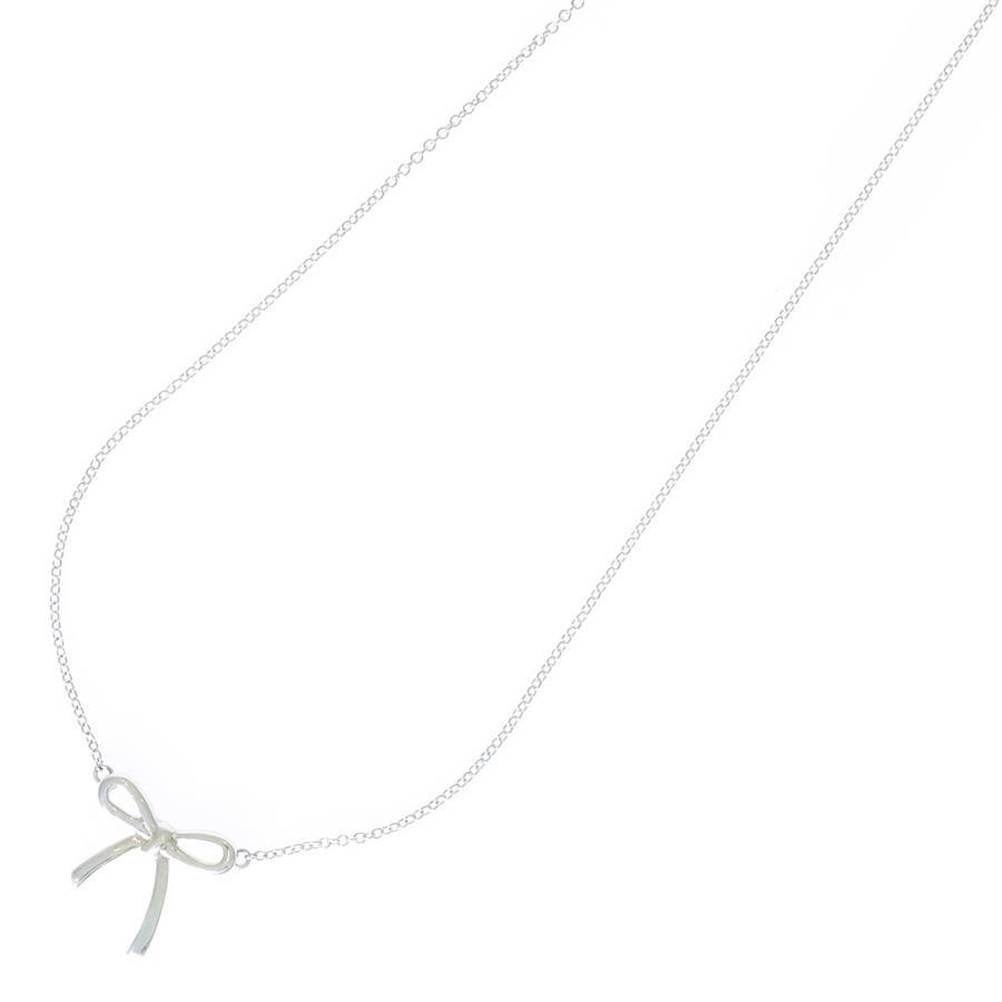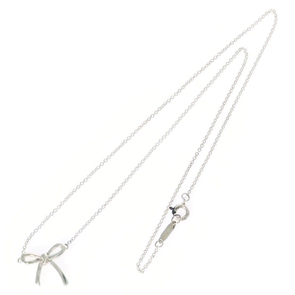 Tiffany Ribbon Top Necklace Pendant Chain Silver SV925 2.0g - Silver