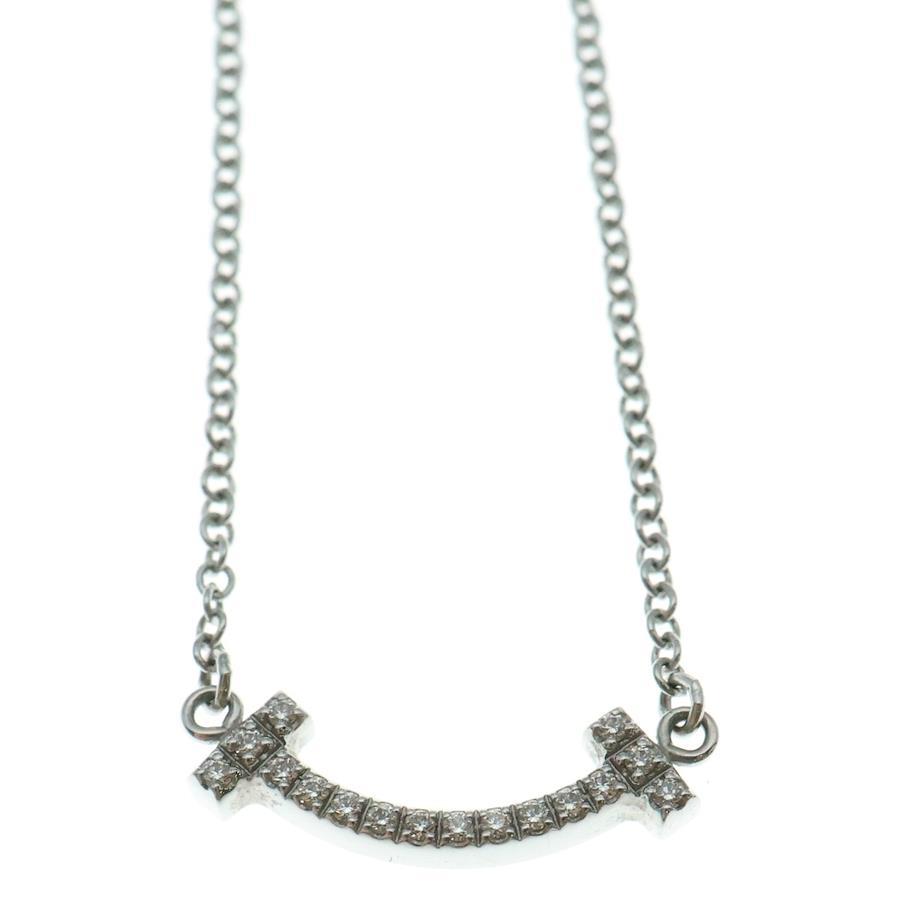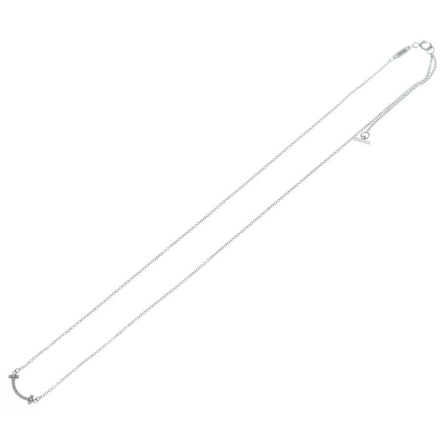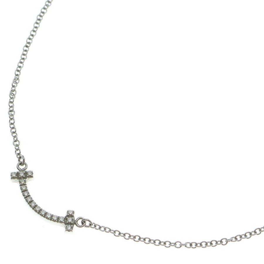 [モデル]Tスマイル ミニ ダイヤ付チェーンネックレス ペンダント Au750WG ホワイトゴールド レディース