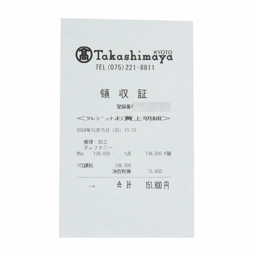 | 付属品 | 内箱・ティファニー修理加工領収書(コピー) |
