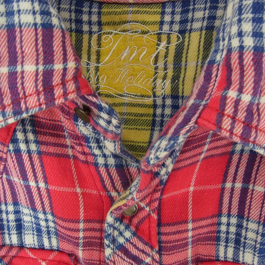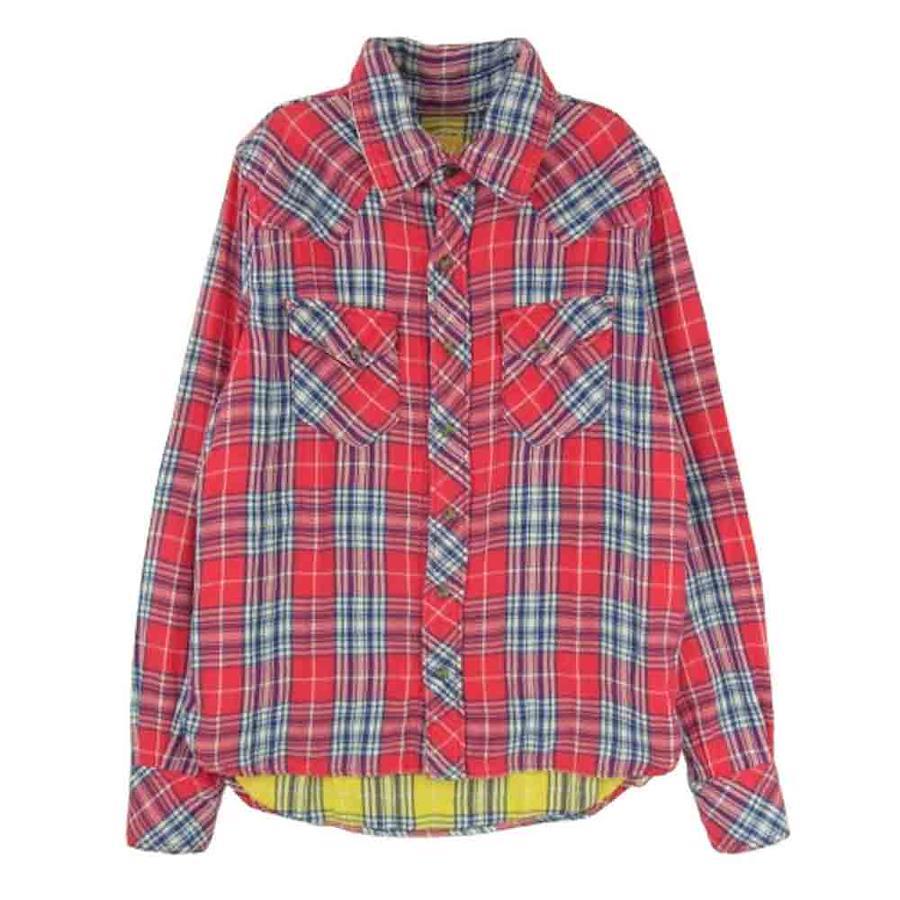 レッド系【モデル】チェック柄 ボタンダウン フランネル コットン 長袖 シャツ
