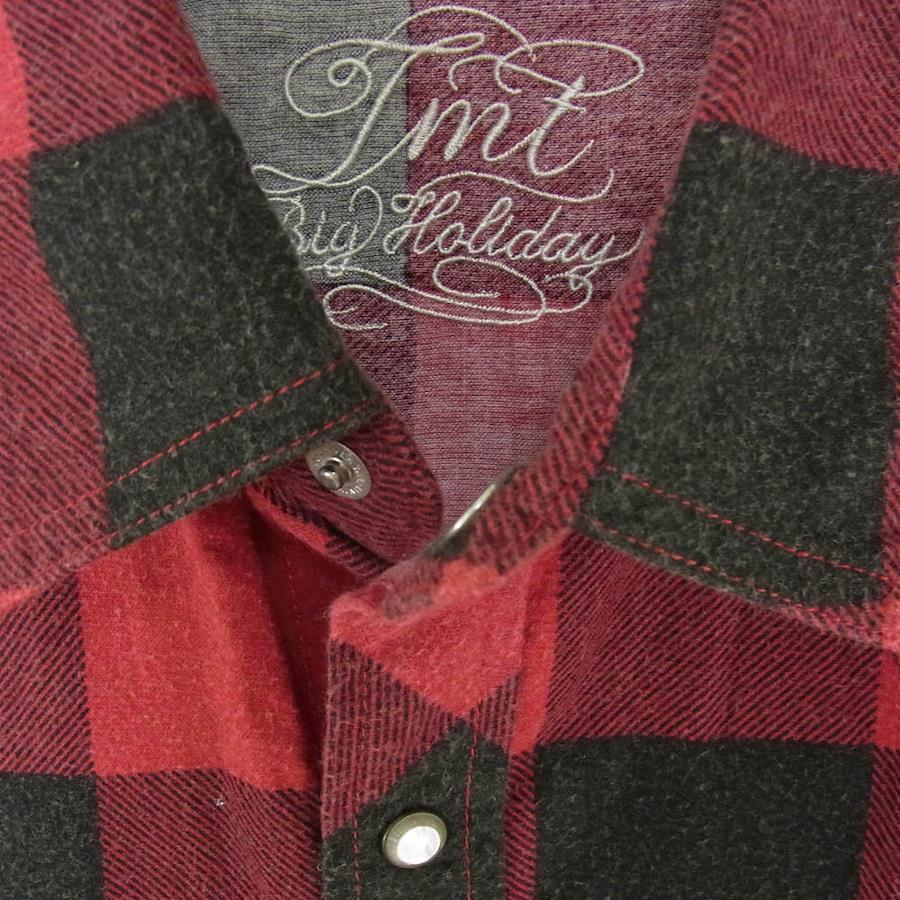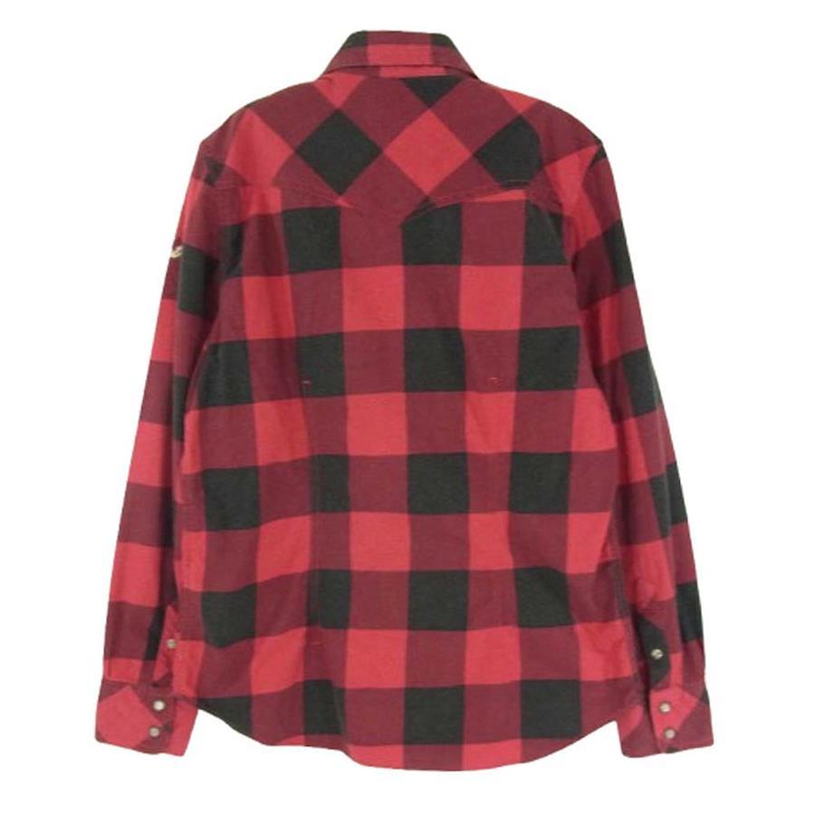 レッド系【モデル】チェック柄 ボタンダウン コットン 長袖 シャツ
