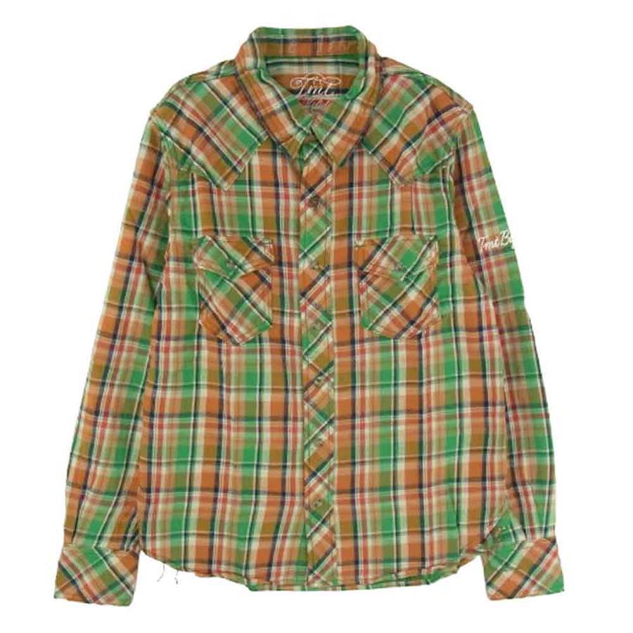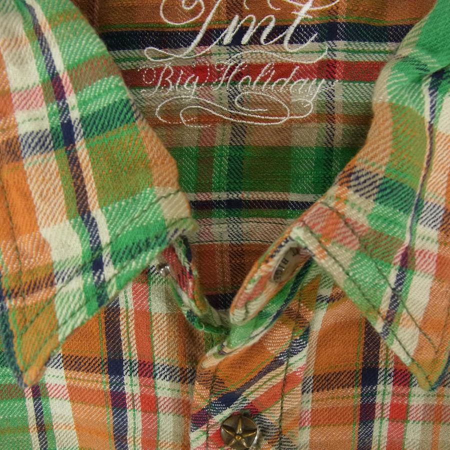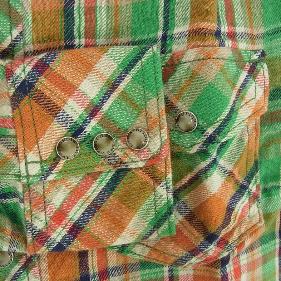 オレンジ系【モデル】マルチカラー チェック柄 フランネル コットン 長袖 シャツ