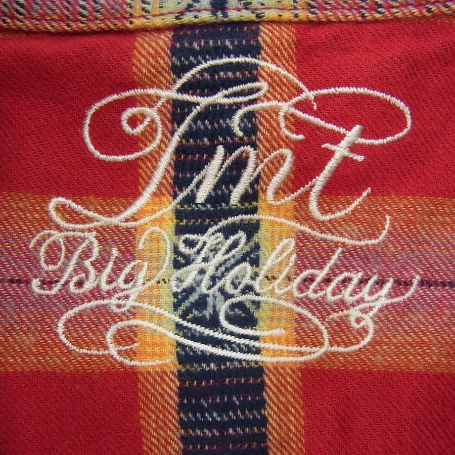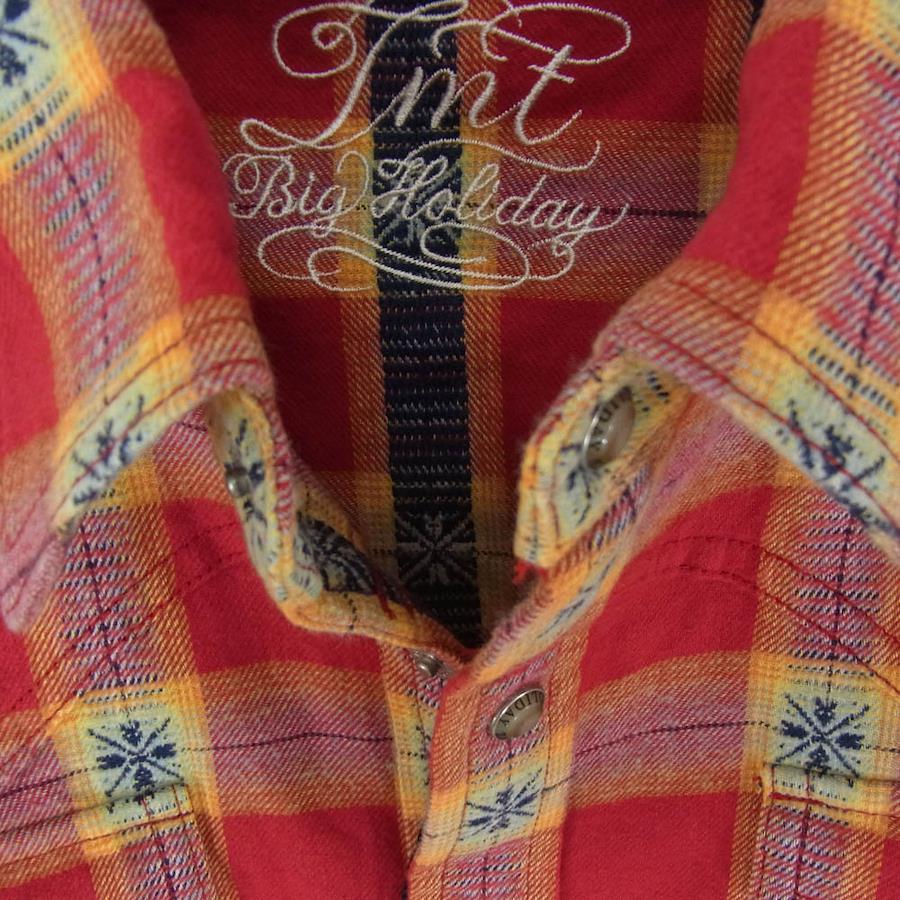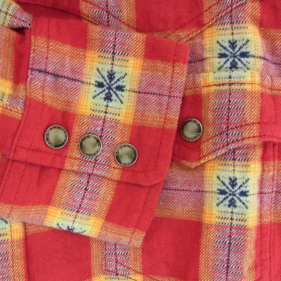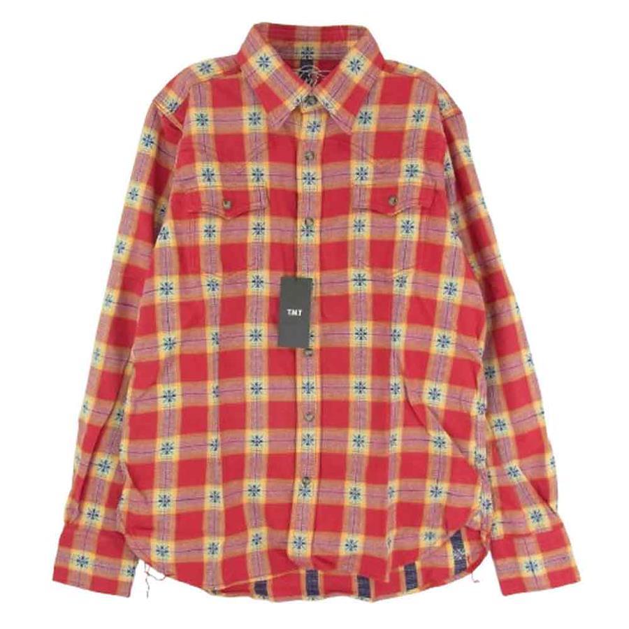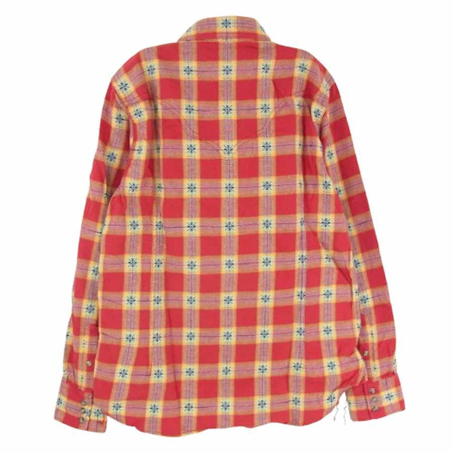 レッド系【モデル】ノルディック柄 チェック柄 コットン 長袖 シャツ