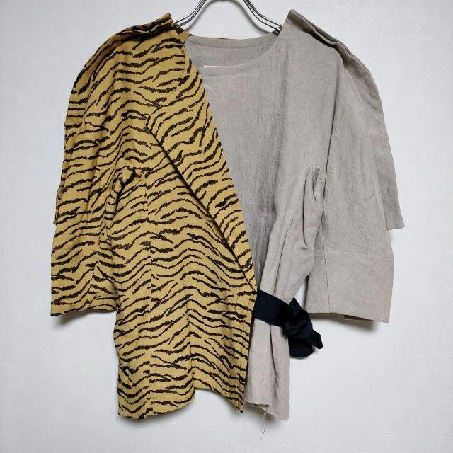| 品質表示 | 柄部分 レーヨン68% アセテート32% 無地部分 麻100% リブ部分 ポリエステル100% 裏生地 キュプラ100% |