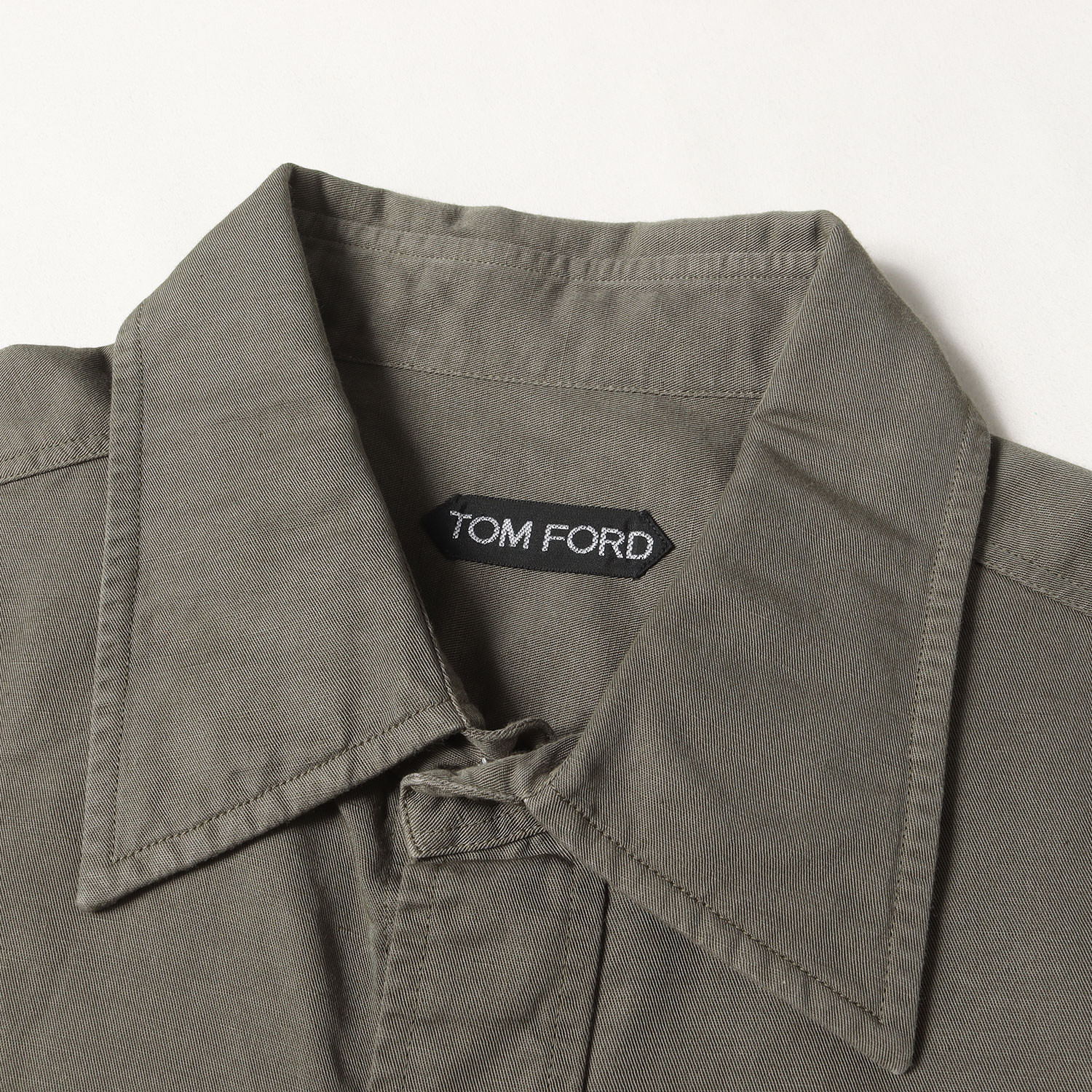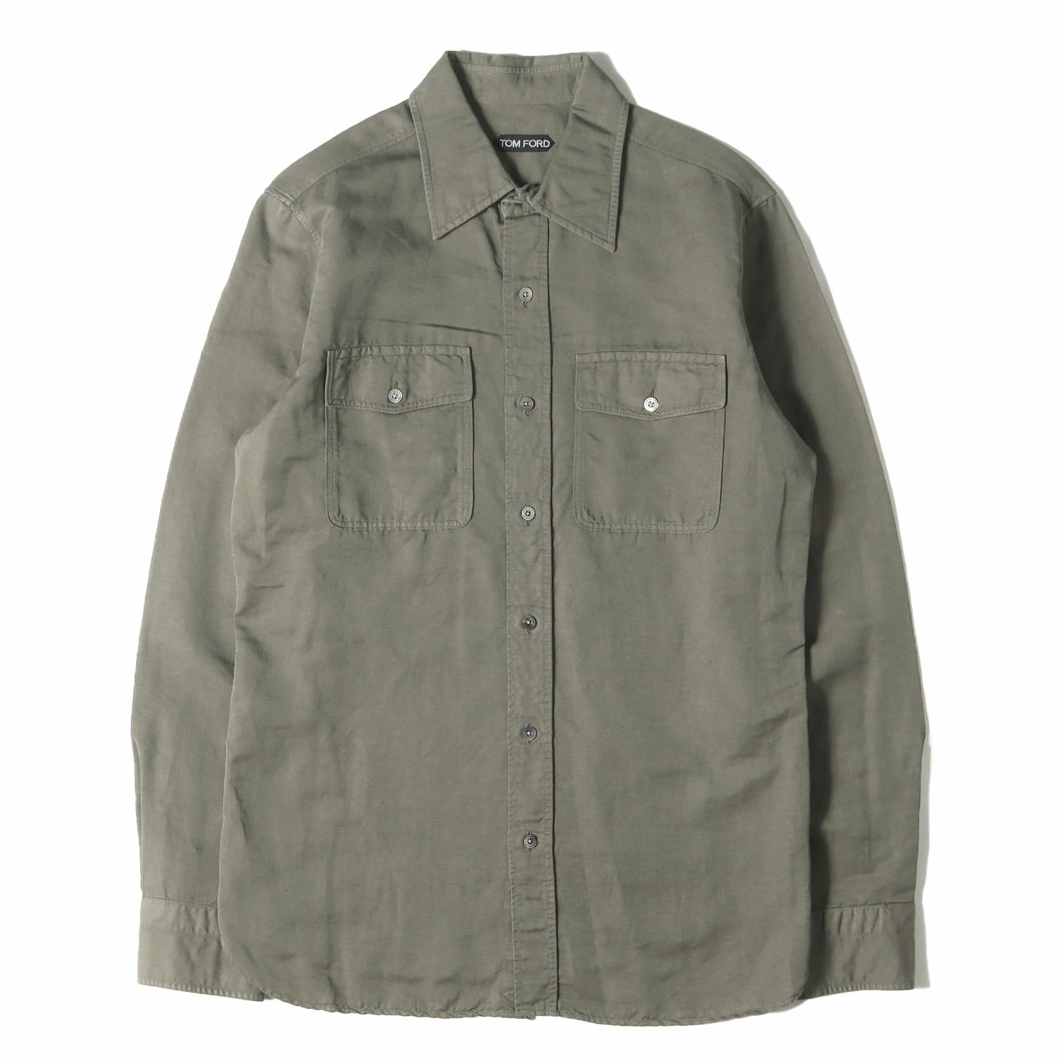 TOM FORD Khaki Shirt, Size 15 1/2 (39) | Linen Shirt (3FT769 94PHRK) | Men's Casual Long Sleeve Shirt (Pre-owned) [K4615]