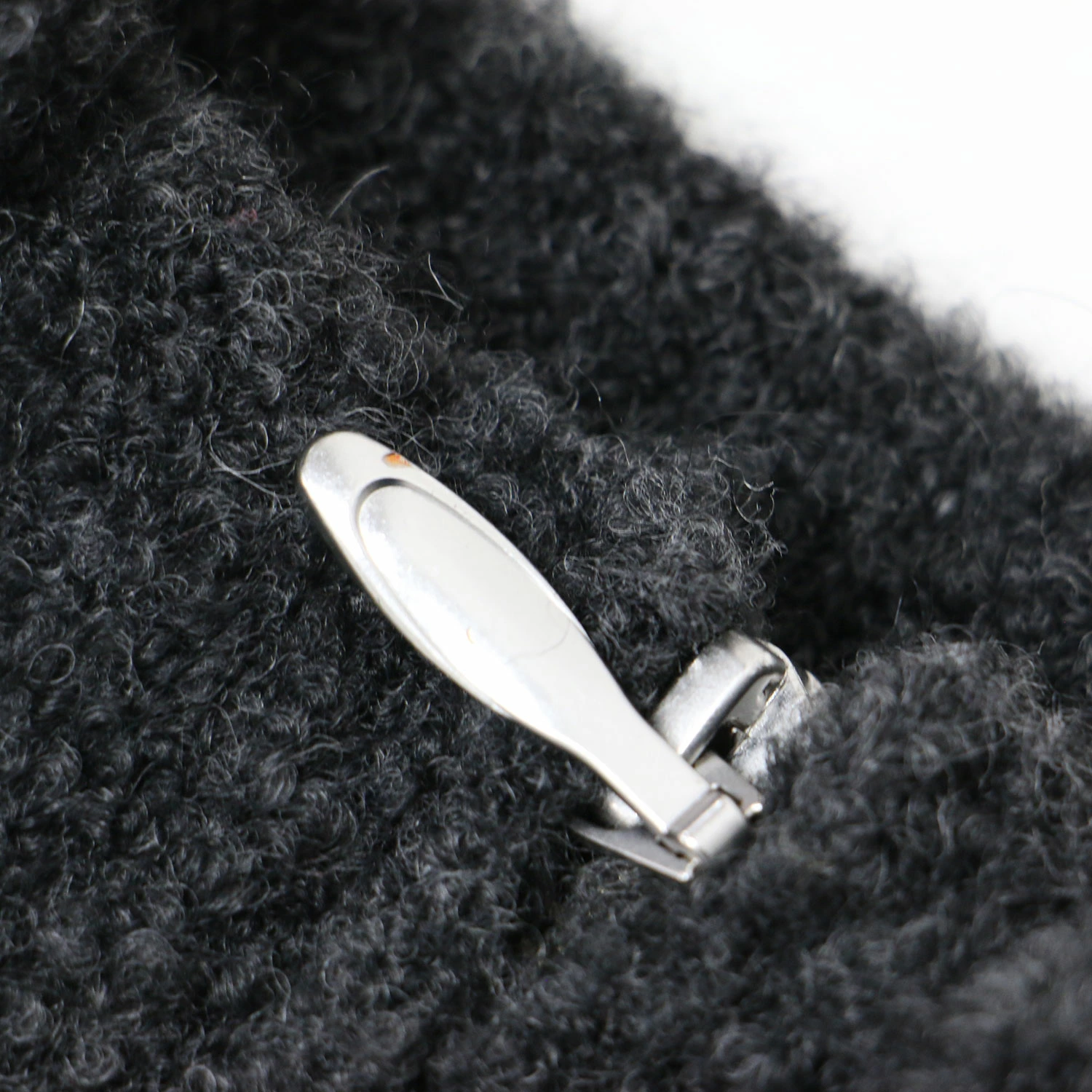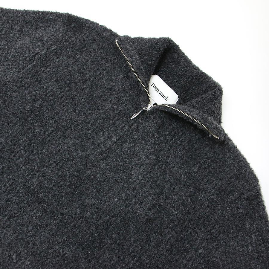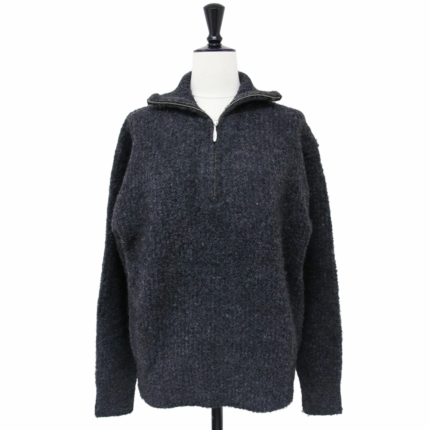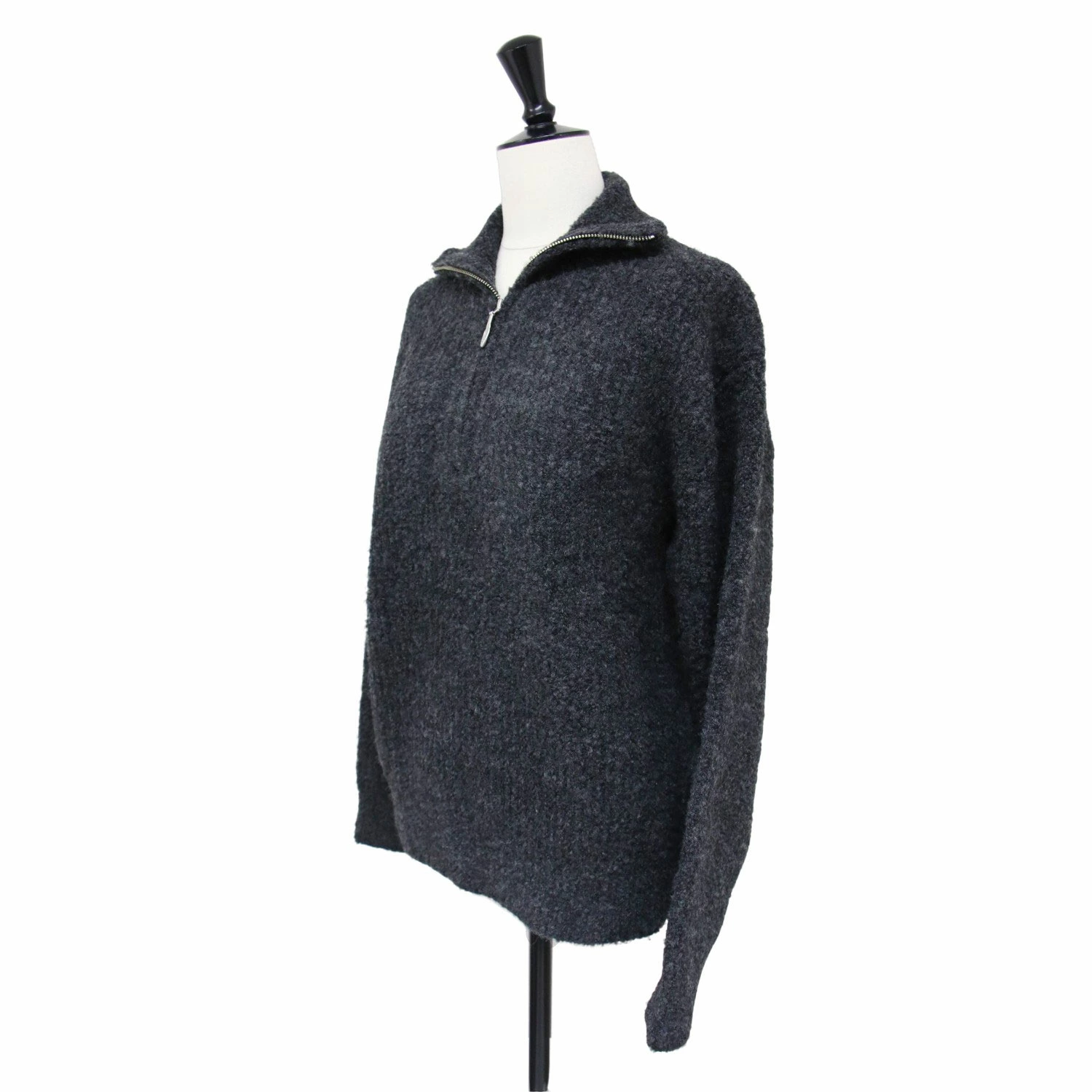 TONY WACK Women's Pre-owned Wool-Blend Boucle Half-Zip Knit Sweater, Gray, Size L, Fall/Winter 2024. High-Neck, Long Sleeves, Pullover Sweater.