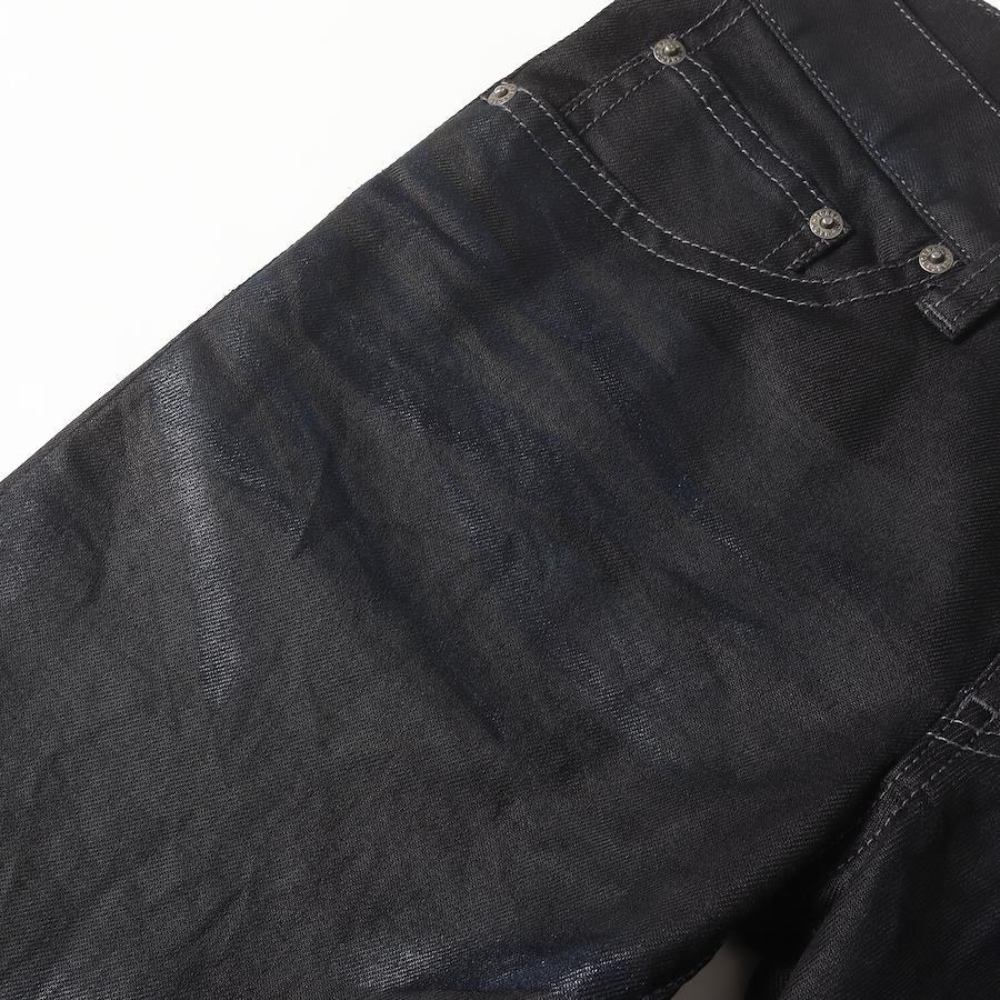| 商品説明 | ストレッチ生地を使用し、コーティング加工を施したジッパーフライデニムパンツです。スリムなフレアシルエットで仕上げた一本になります。 |